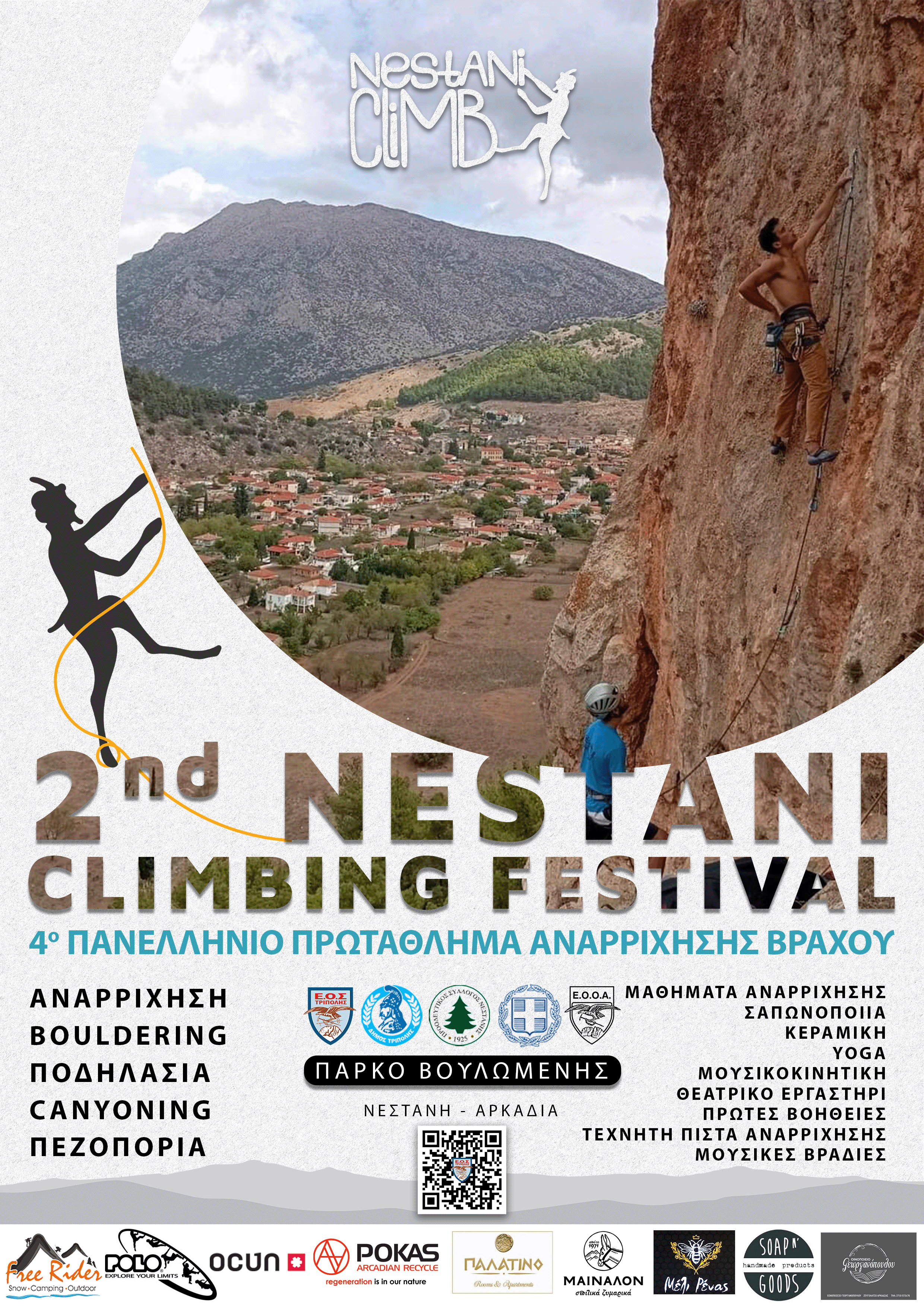 Μετά την επιτυχία του 1ου φεστιβάλ το 2024, το 2ο Φεστιβάλ Αναρρίχησης Νεστάνης έρχεται το 2025 με ένα ανοιξιάτικο τριήμερο στην υπέροχη Αρκαδική φύση, γεμάτο αναρρίχηση, μουσικές βραδιές, καλλιτεχνικά εργαστήρια, εκπαιδευτικά προγράμματα, παραδοσιακά προϊόντα, πεζοπορίες, ποδηλασίες, διαγωνισμούς και πολλές πολλές ακόμα δράσεις για όλες τις ηλικίες!