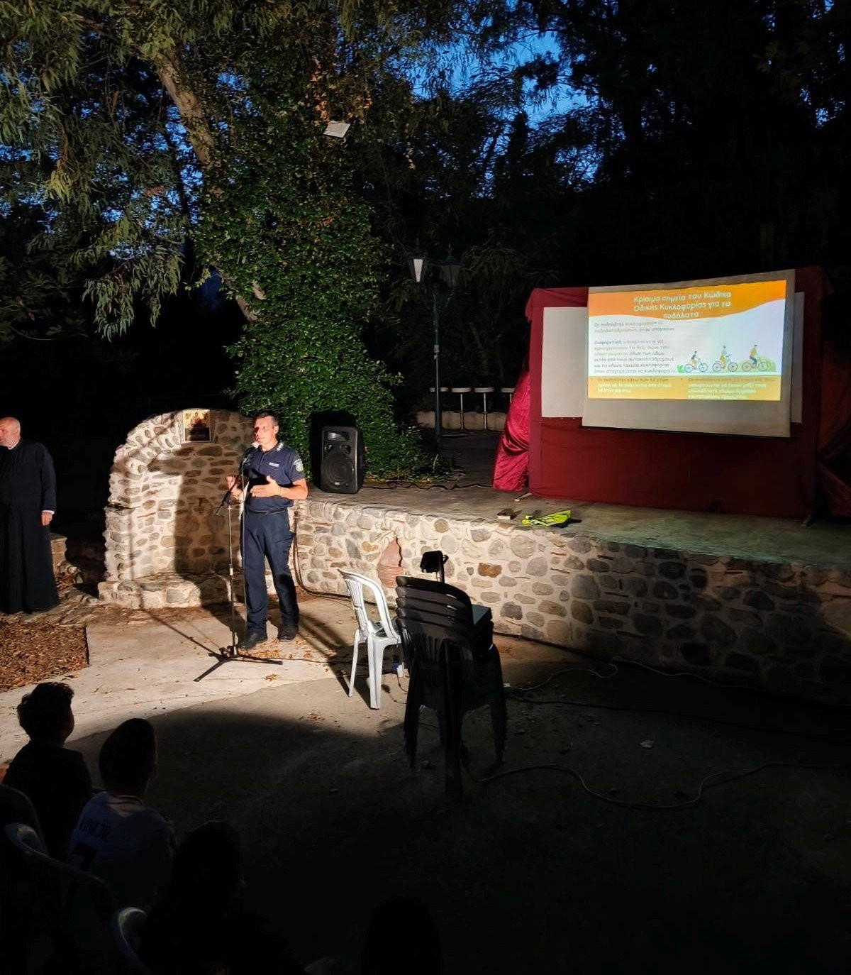 -την 23.7.2025 στη τοπική κοινότητα Μαγούλα δήμου Σπάρτης, από αστυνομικούς του Τμήματος Τροχαίας Σπάρτης, ενημερωτική ημερίδα με θέμα «Ποδήλατο και οδική ασφάλεια» και