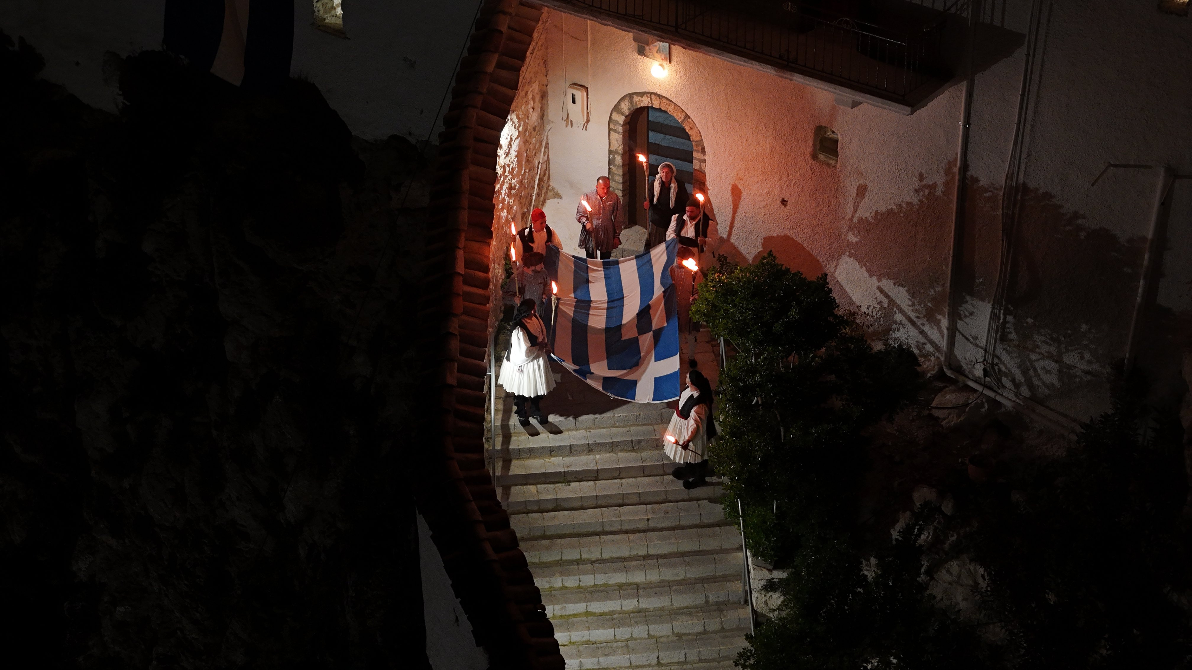 Η πομπή, κρατώντας φλόγες τιμής, διέσχισε τους δρόμους του χωριού και κατέληξε στην κεντρική πλατεία, όπου πραγματοποιήθηκε κατάθεση στεφάνων στη μνήμη των ηρώων της Ελληνικής Επανάστασης. Η εκδήλωση κορυφώθηκε με ένα φαντασμαγορικό θέαμα πυροτεχνημάτων και παραδοσιακούς χορούς, δημιουργώντας μια συγκινητική ατμόσφαιρα που θύμισε σε όλους τη σημασία της ημέρας.