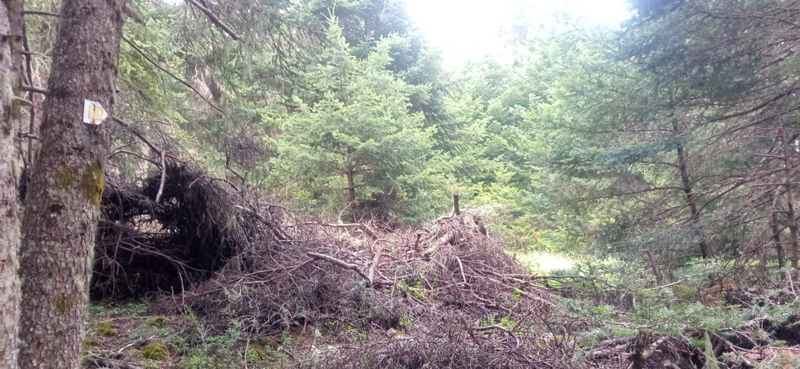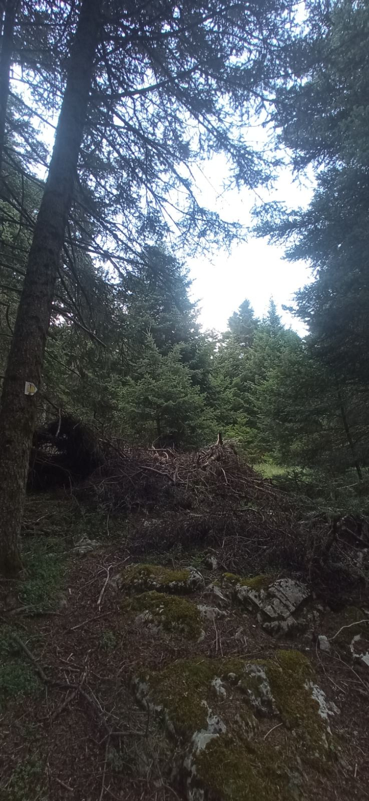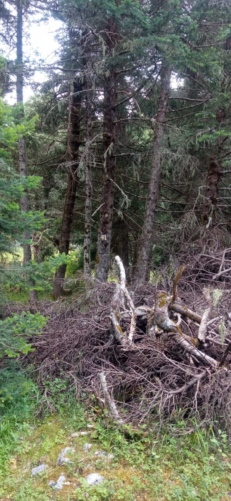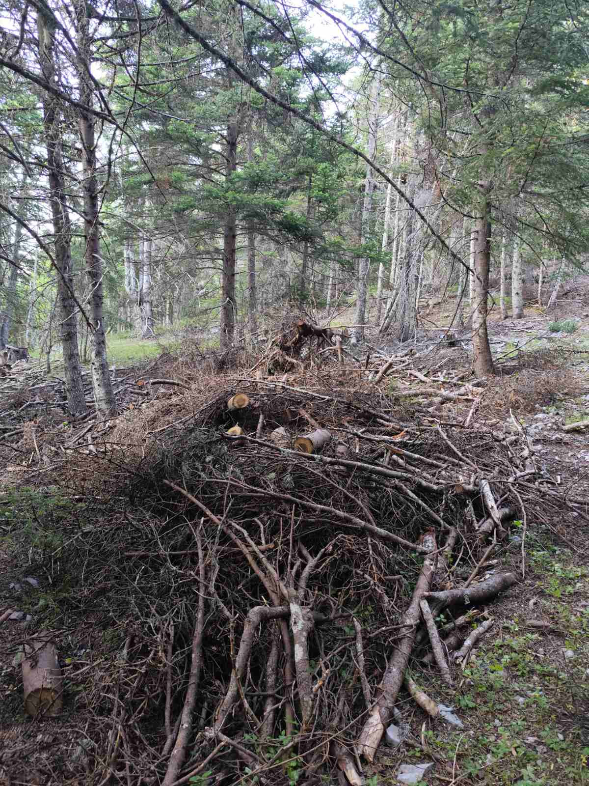 Όπως φαίνεται στις φωτογραφίες, ξερά κλαδιά βρίσκονται στοιβαγμένα στο δάσος του Μαινάλου, μέσα στην αντιπυρική περίοδο και με τους καύσωνες τους καλοκαιριού να πλησιάζουν.