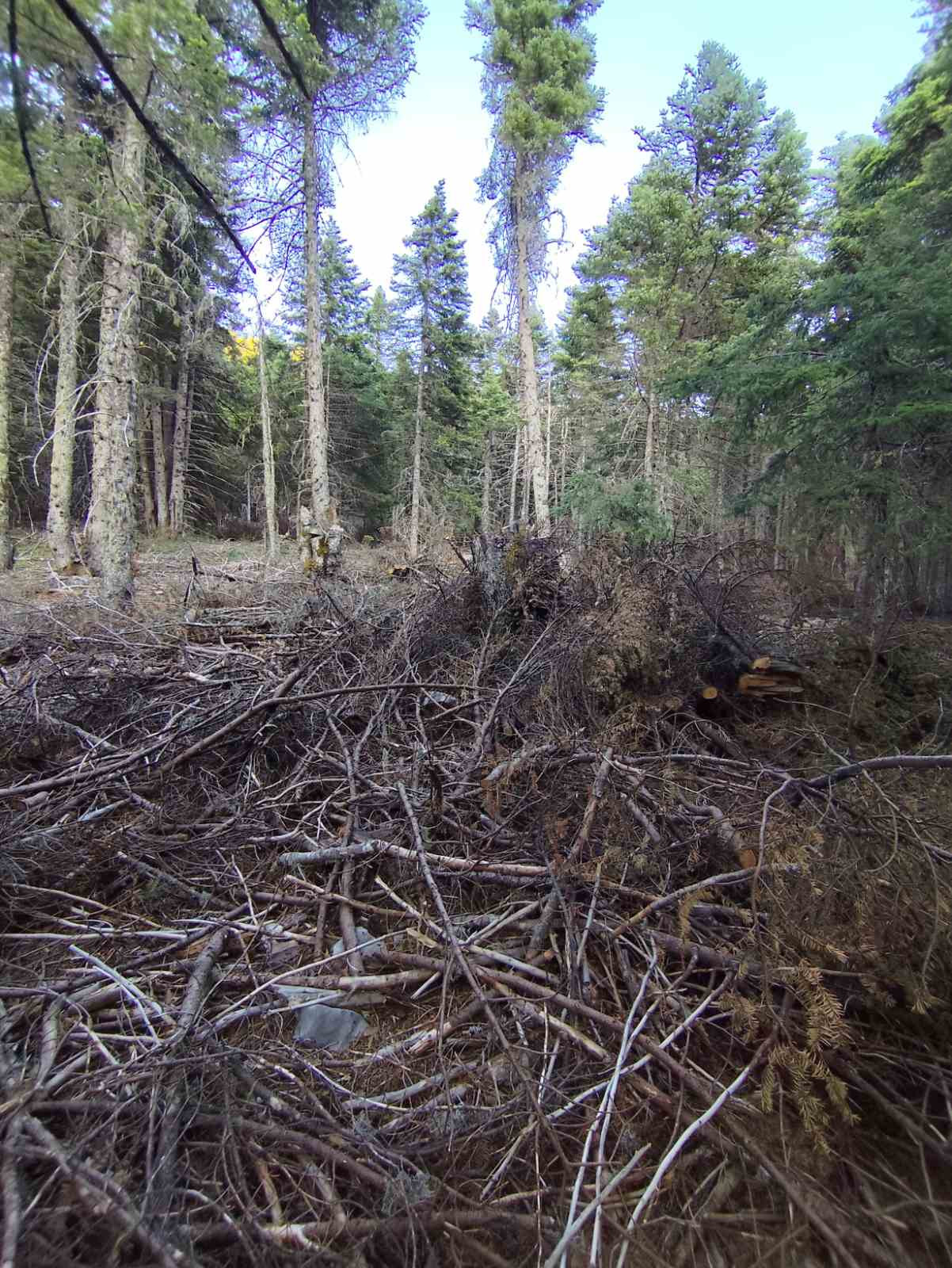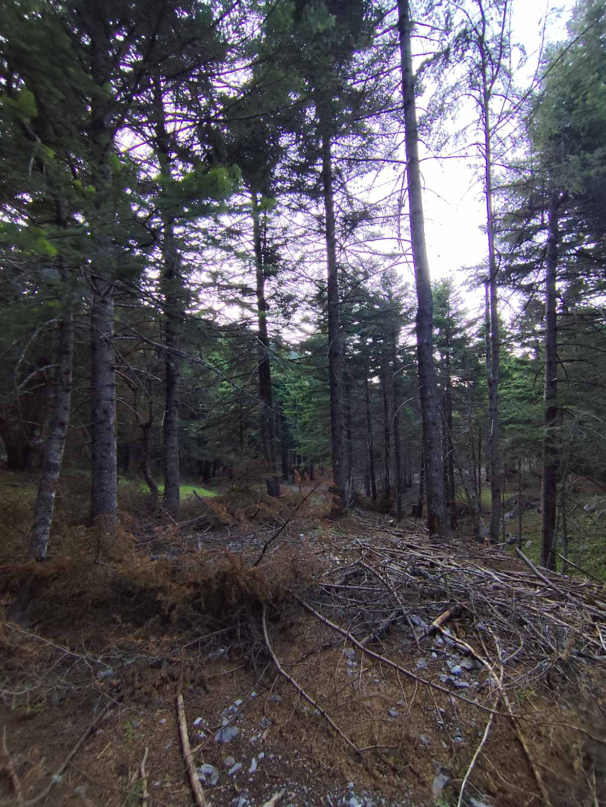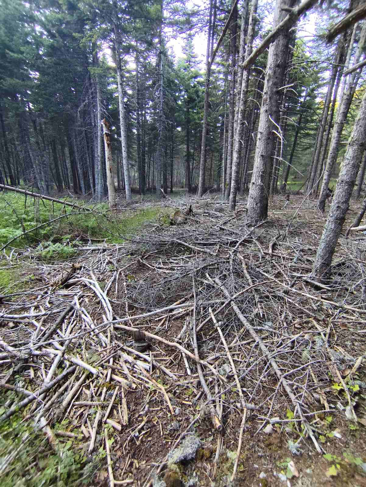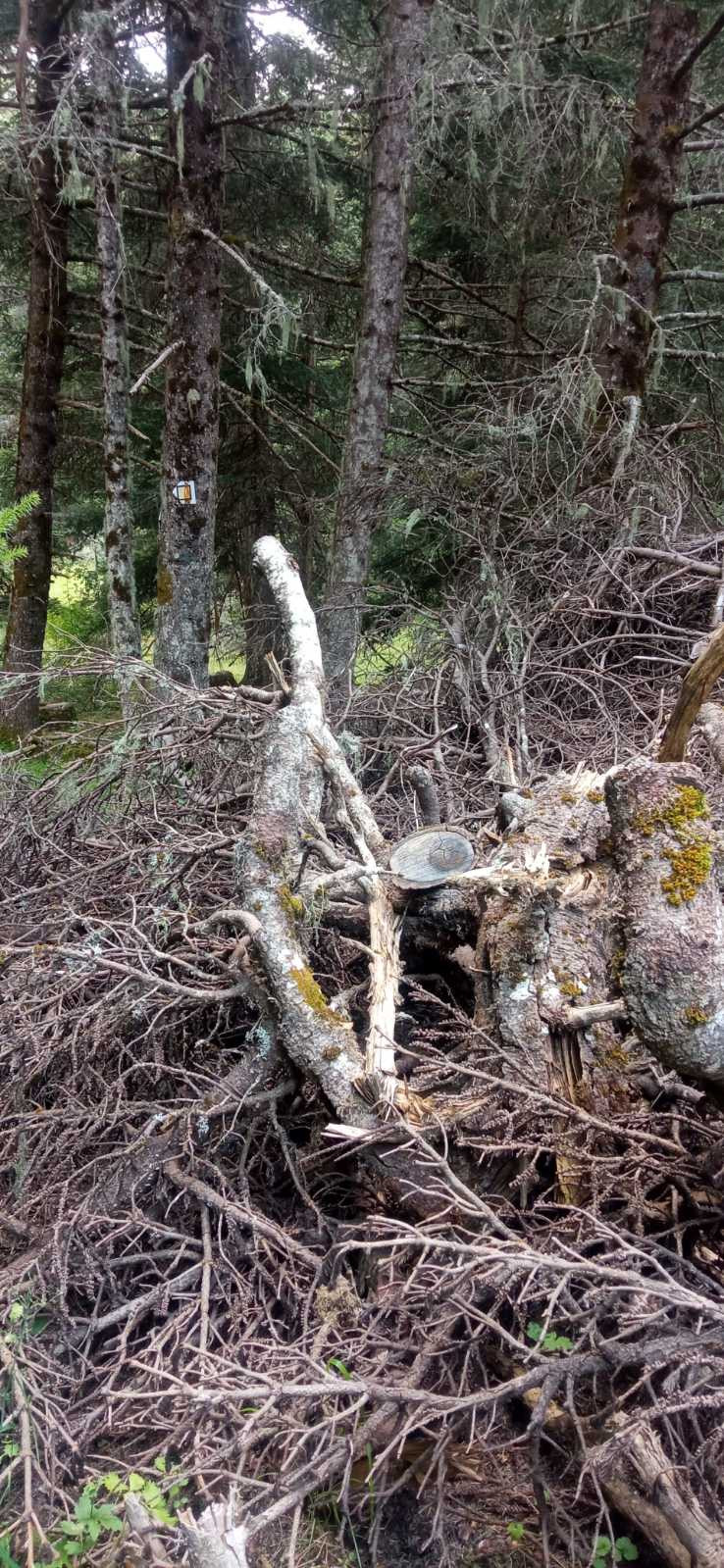 Όπως φαίνεται στις φωτογραφίες, ξερά κλαδιά βρίσκονται στοιβαγμένα στο δάσος του Μαινάλου, μέσα στην αντιπυρική περίοδο και με τους καύσωνες τους καλοκαιριού να πλησιάζουν.