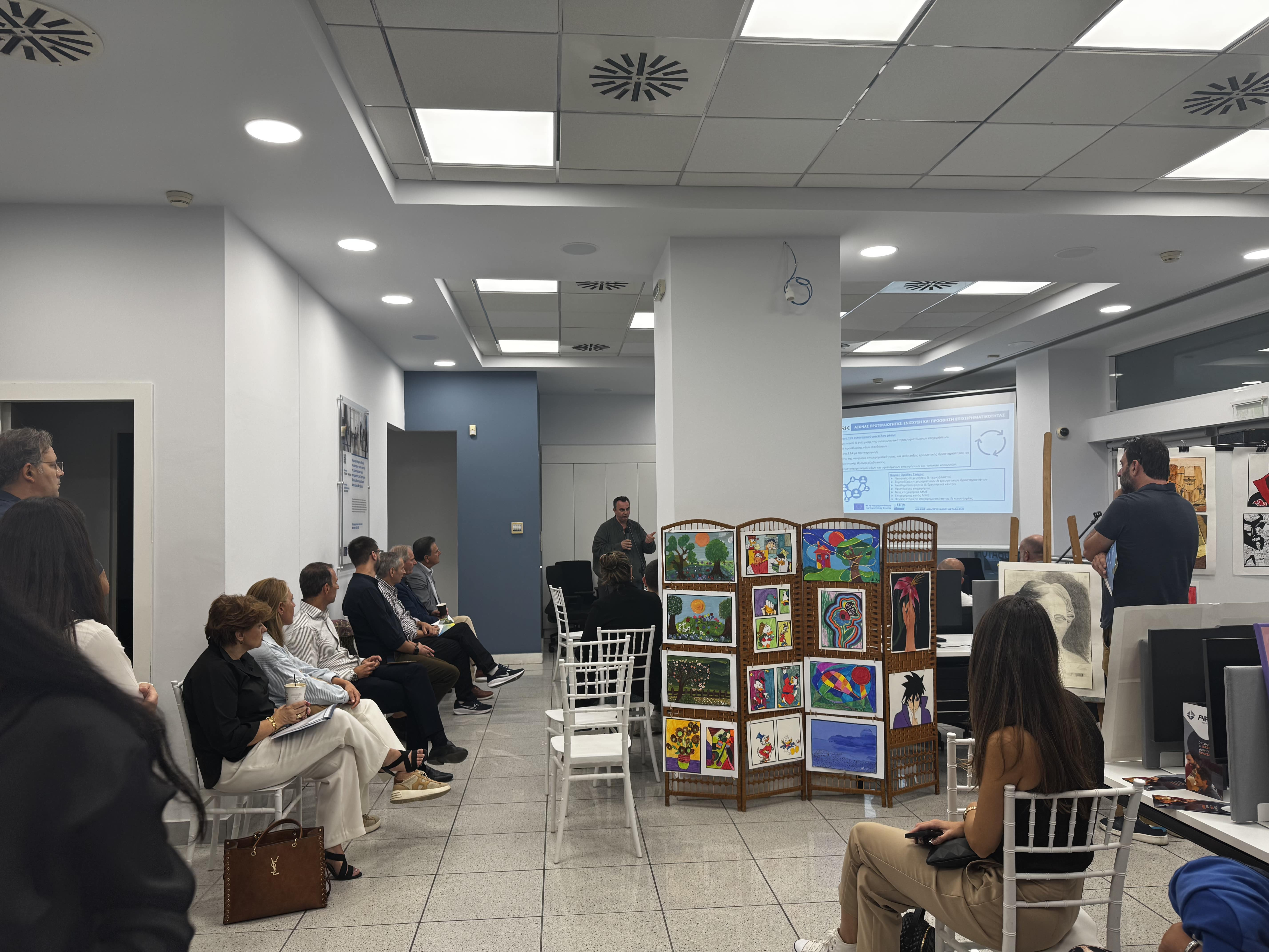 Το οδοιπορικό ολοκληρώθηκε στο χώρο της Θερμοκοιτίδας Ark Incubator όπου ο κ. Γιάννης Παπαδημητρίου και ο κ. Φραγκίσκος Θεοφύλακτος εκ μέρους της ένωσης εταιρειών – φορέα υλοποίησης του έργου, ενημέρωσαν για τις υπηρεσίες ανάπτυξης της καινοτομίας και της επιχειρηματικότητας που παρέχονται, καθώς επίσης και για τη δυνατότητα εγκατάστασης επιχειρήσεων στους χώρους του Ark.