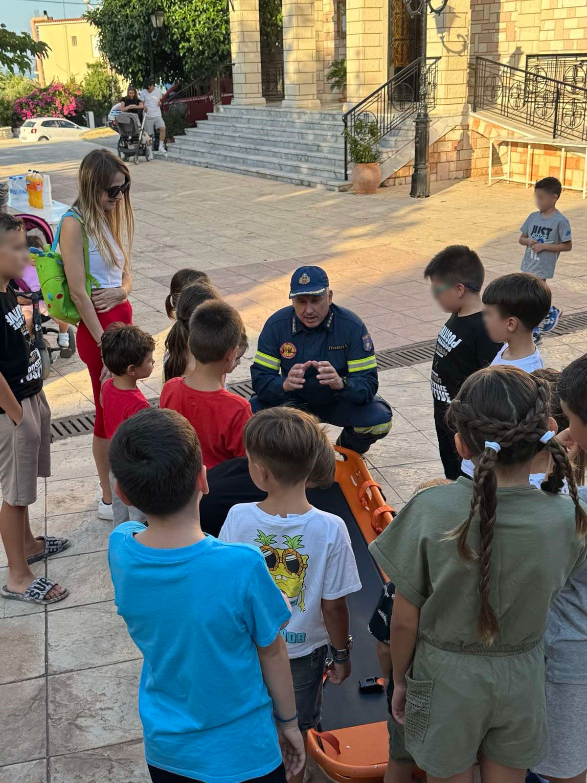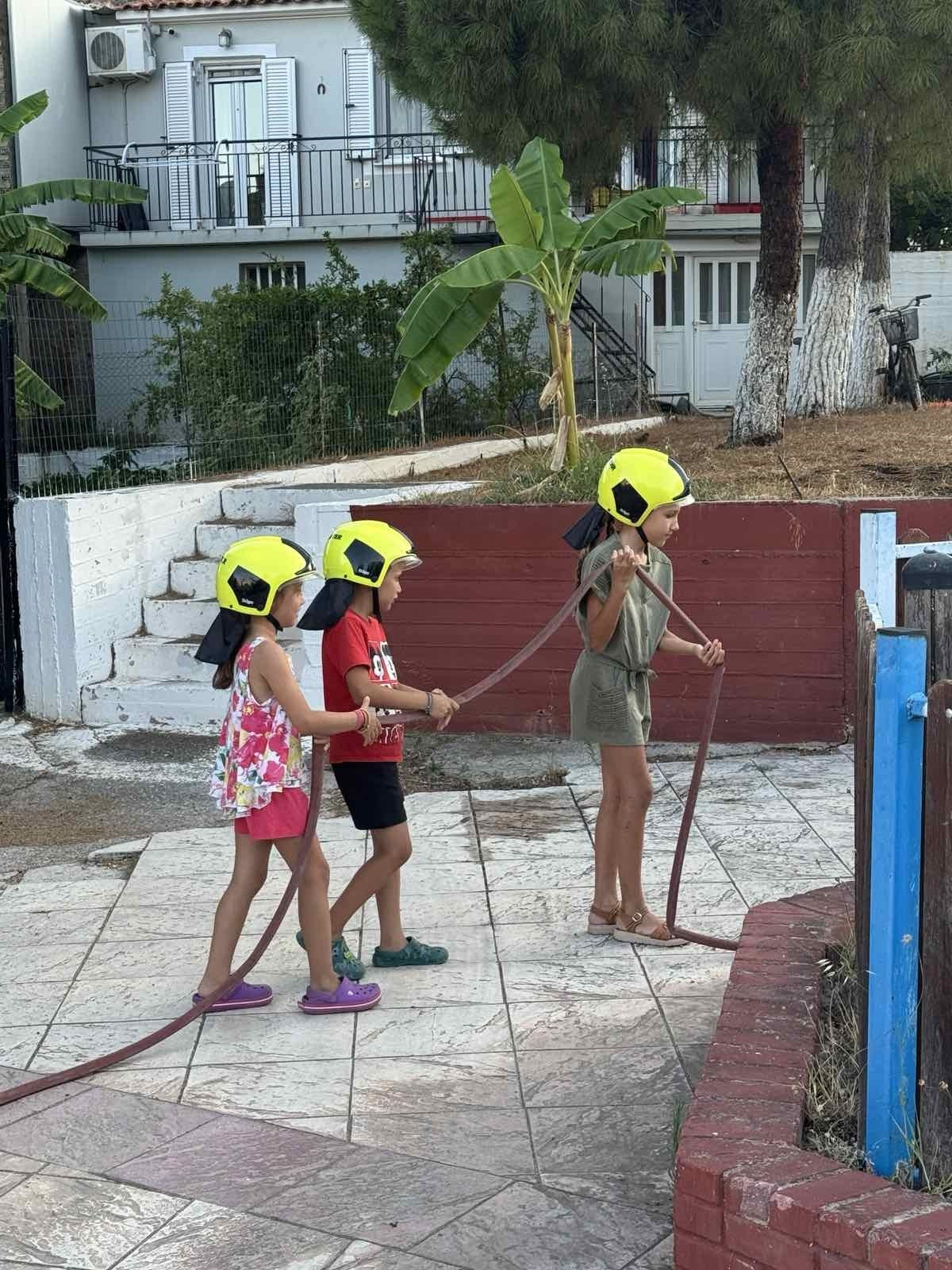 Παιδιά σχολικής ηλικίας με ενθουσιασμό, αυτοπεποίθηση και πειθαρχία, ακολουθώντας τις οδηγίες των πυροσβεστών συμμετείχαν σε όλες τις δράσεις παρακινώντας ακόμα και κάποιους διστακτικούς να ακολουθήσουν.