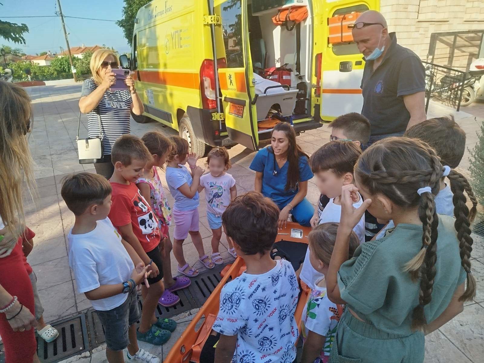 Ενημέρωση για τις πρώτες βοήθειες, την αποφυγή ατυχημάτων και τρόποι ακινητοποίησης τραυματισμένου ατόμου σε φορείο από υγειονομικό προσωπικό του Κέντρου Υγείας Άστρους, το οποίο ανταποκρίθηκε στην πρόσκληση.
