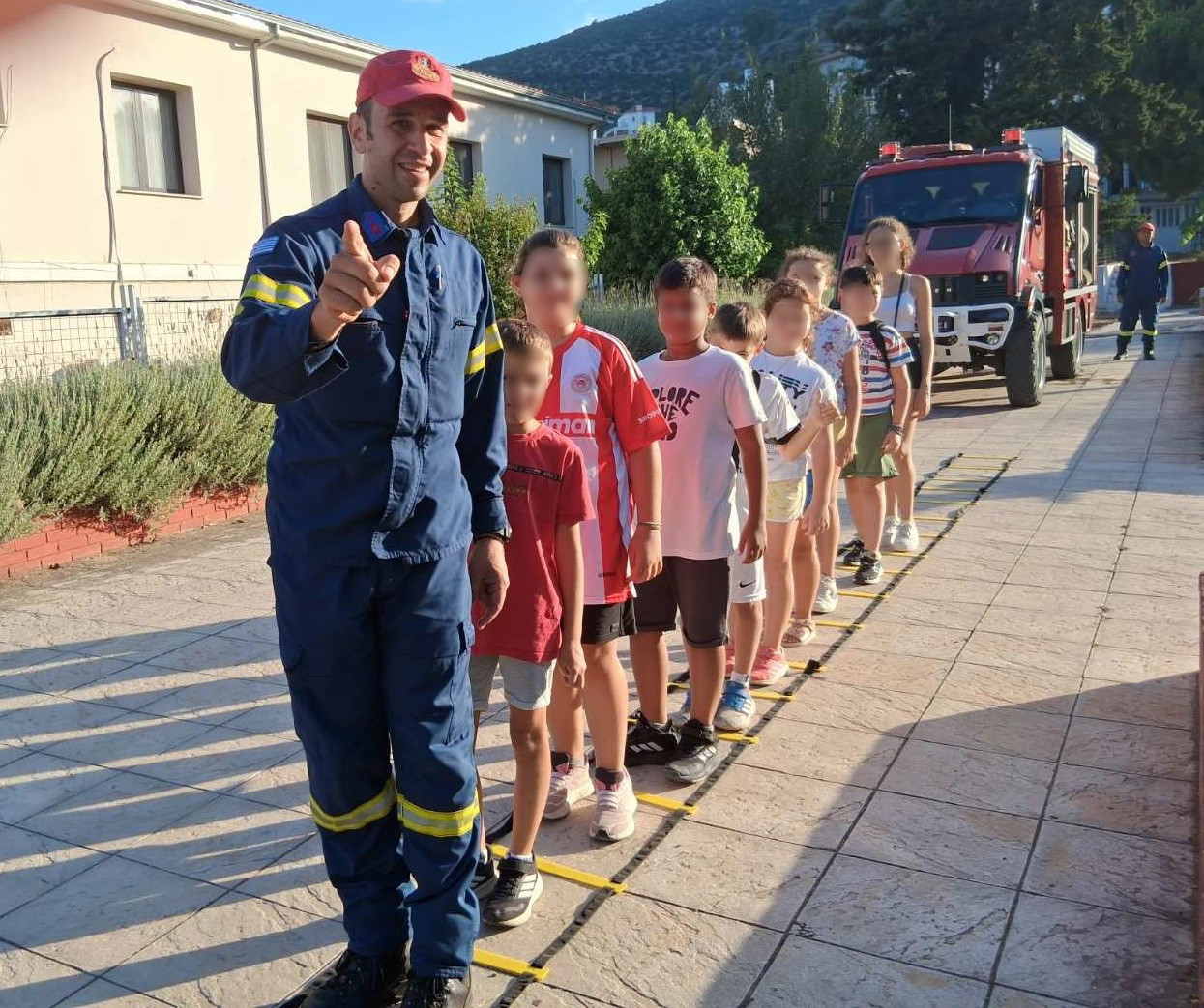 Ανάπτυξη πυροσβεστικών εγκαταστάσεων σε στίβο δράσεων με φυσικά εμπόδια και πυροσβεστικές δοκιμασίες για νήπια και παιδιά έως 12 ετών.