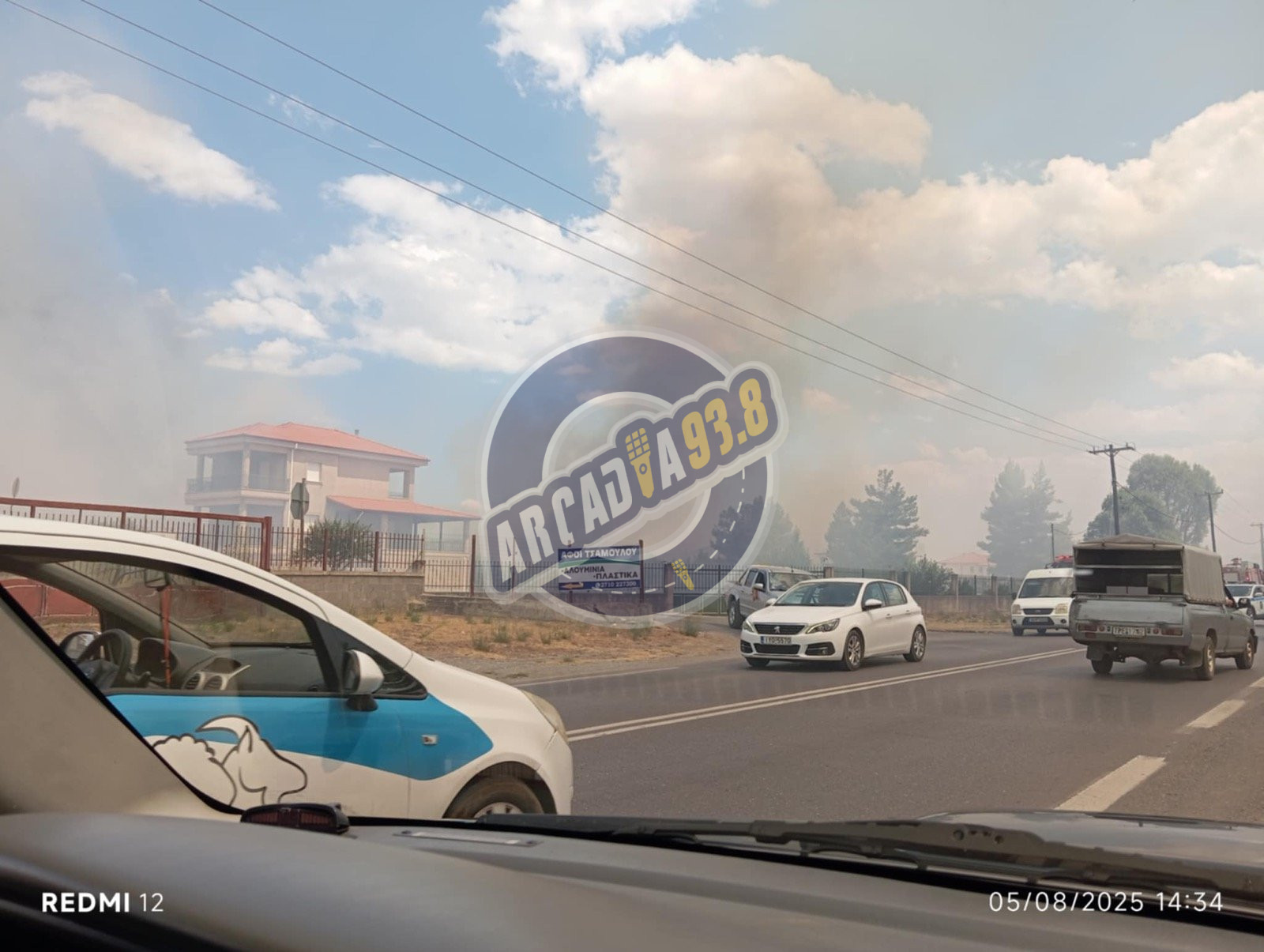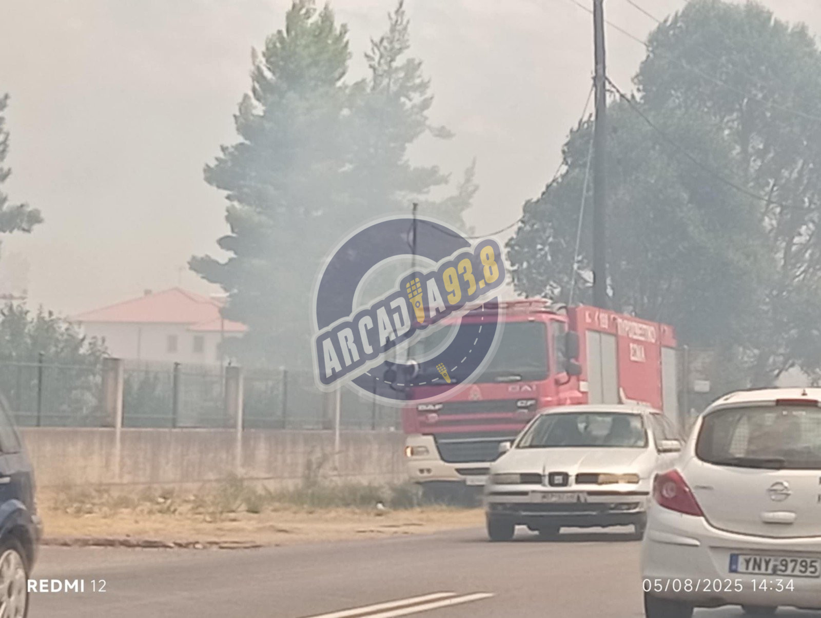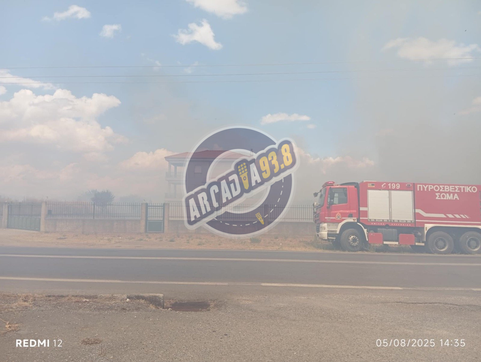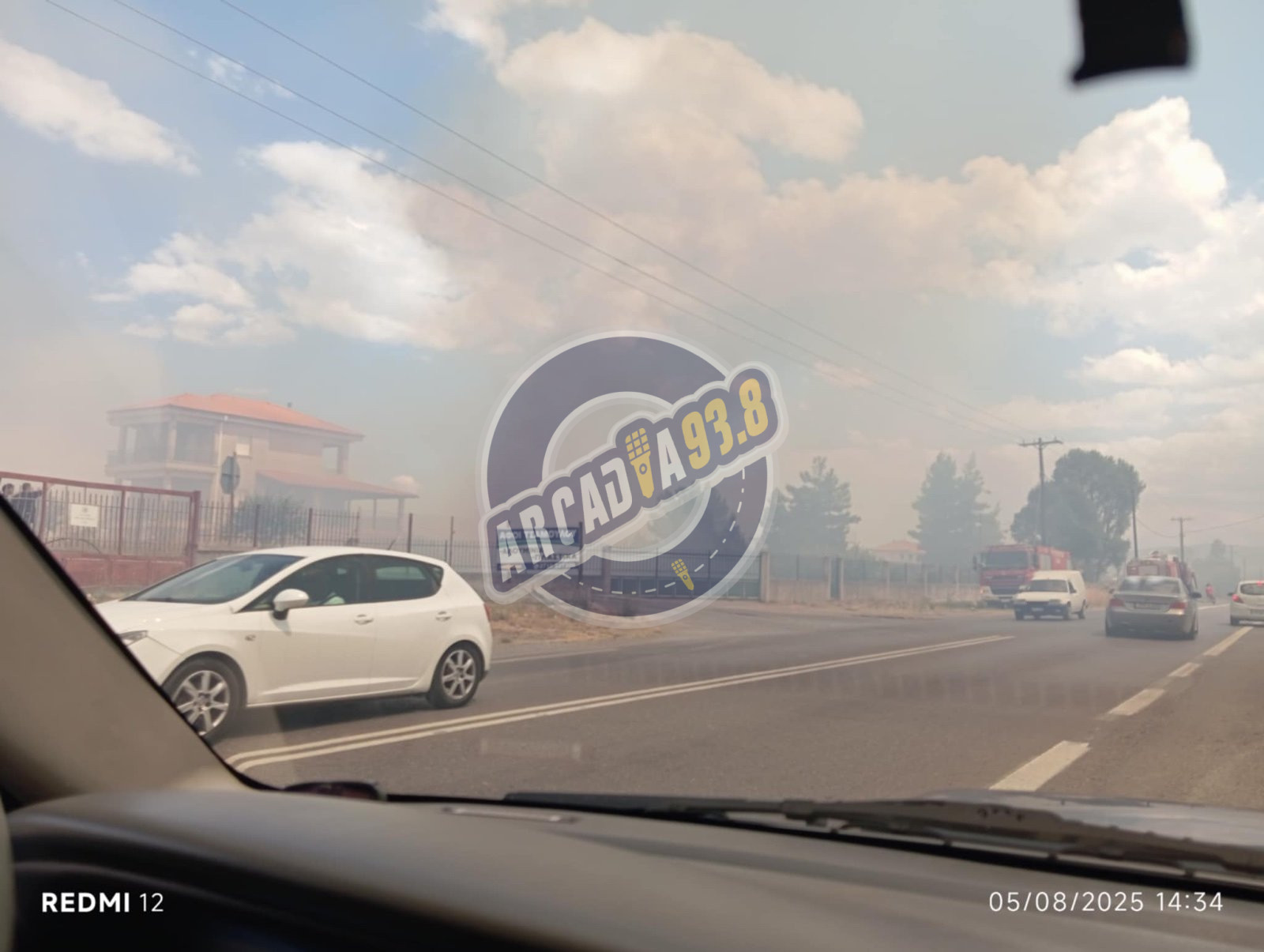 Φωτιά ξέσπασε το μεσημέρι της Τρίτης, 5 Αυγούστου 2025, στο 3ο χλμ. Τρίπολης - Σπάρτης.