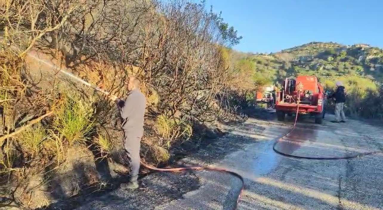 Η πυρκαγιά που ξεκίνησε από άγνωστη μέχρι στιγμής αιτία από το πρανές του δρόμου έκαψε περίπου 500 τετραγωνικά μέτρα δασικής έκτασης με πουρνάρια.