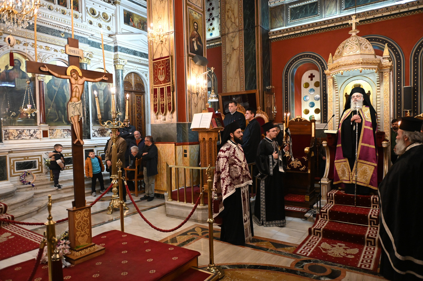 Πλήθος πιστών συνέρρευσε από νωρίς στην κατανυκτική Ακολουθία για να παρακολουθήσει τα δώδεκα Ευαγγέλια και να προσκυνήσει τον Εσταυρωμένο Χριστό. Ο Μητροπολίτης στο κήρυγμά του, ανέφερε ότι όλοι απόψε, είμαστε στη σκιά και στην αγκάλη του Σταυρού, ευχαριστώντας τους για την παρουσία του και ευχόμενος σε όλους να αξιωθούν της Αναστάσιμης χαράς!