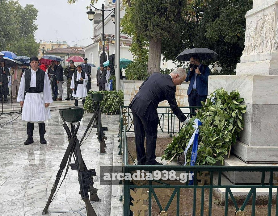 Ο Υπουργός Εθνικής Άμυνας, Νίκος Δένδιας όχι μόνο κατέθεσε στεφάνι, αλλά και σε μία κίνηση υψηλού συμβολισμού, κατέθεσε στεφάνι και στον ανδριάντα του Θεόδωρου Κολοκοτρώνη. Την ελληνική κυβέρνηση εκπροσώπησε και ο Αρκάς Υφυπουργός Παιδείας και βουλευτής, Κώστας Βλάσης. Παρών ήταν και ο Ευρωβουλευτής της ΝΔ, που έλκει την καταγωγή του από τα μέρη μας, κ. Δημήτρης Τσιόδρας.