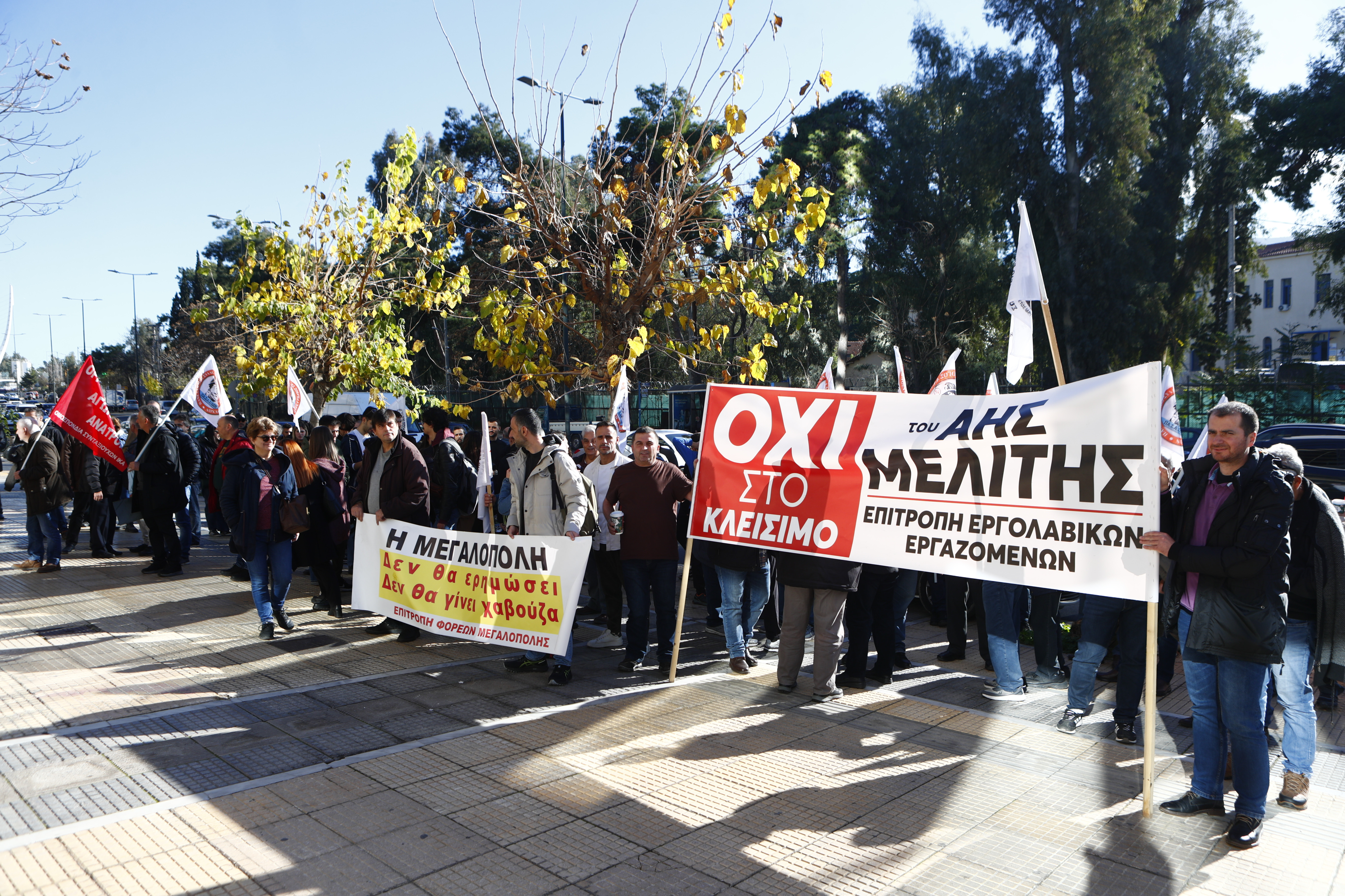 Με πανό και συνθήματα, μέλη της Επιτροπής Φορέων και της Επιτροπής Αγώνα των εργαζομένων του ΑΗΣ Μελίτης διατράνωσαν τα αιτήματά τους.