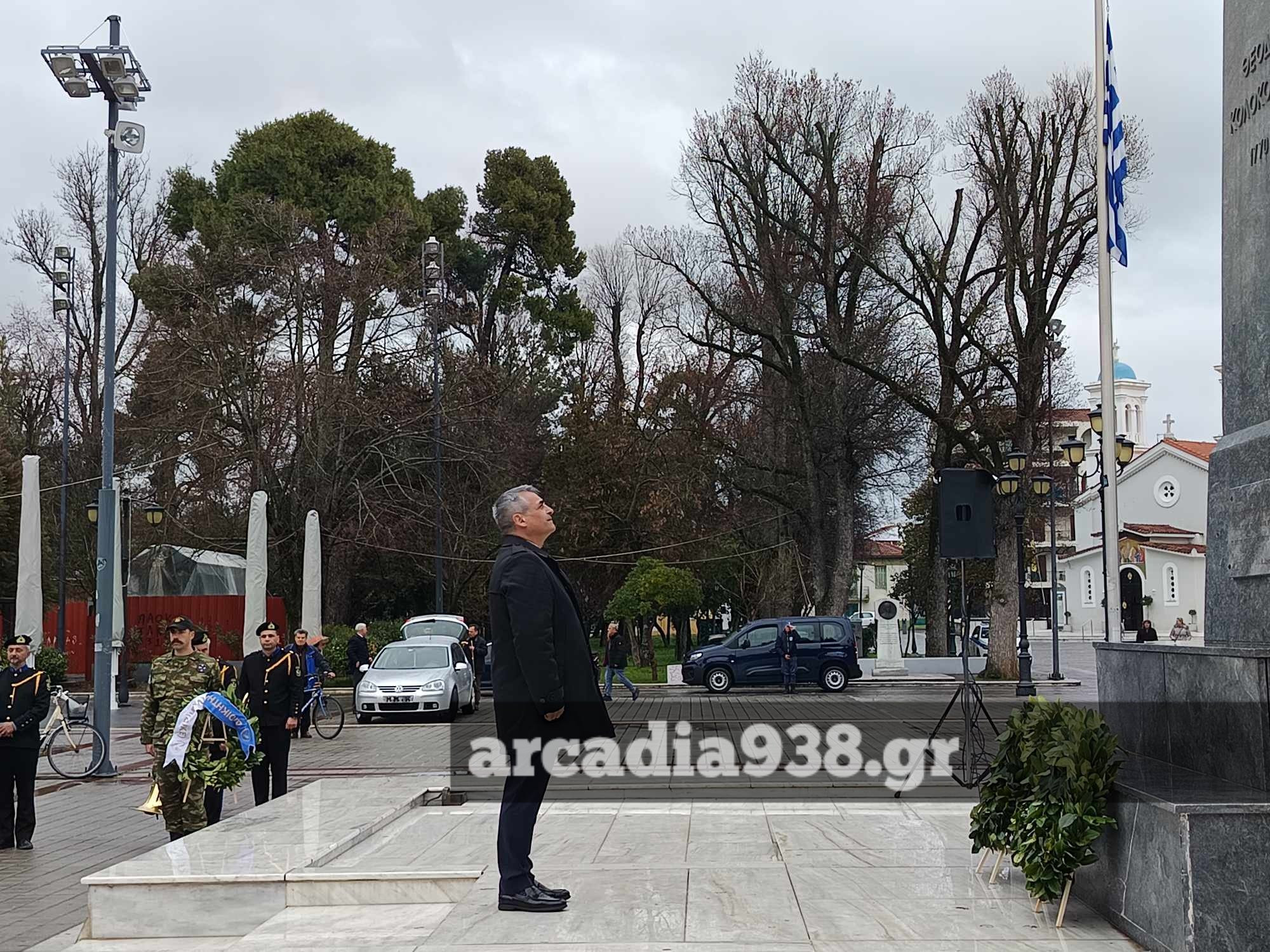 Πέρα από την κατάθεση στεφάνων από εκπροσώπους της πολιτικής ηγεσίας, όπως κι από αντίστοιχους της στρατιωτικής, των σωμάτων ασφαλείας και ενώσεων αποστράτων- αλλά και από εκπρόσωπο της Παναρκαδικής Ομοσπονδίας, η εκδήλωση περιλάμβανε και απόδοση Κολοκοτρωνέικου δημοτικού τραγουδιού από το Δημήτρη Καραχάλιο.