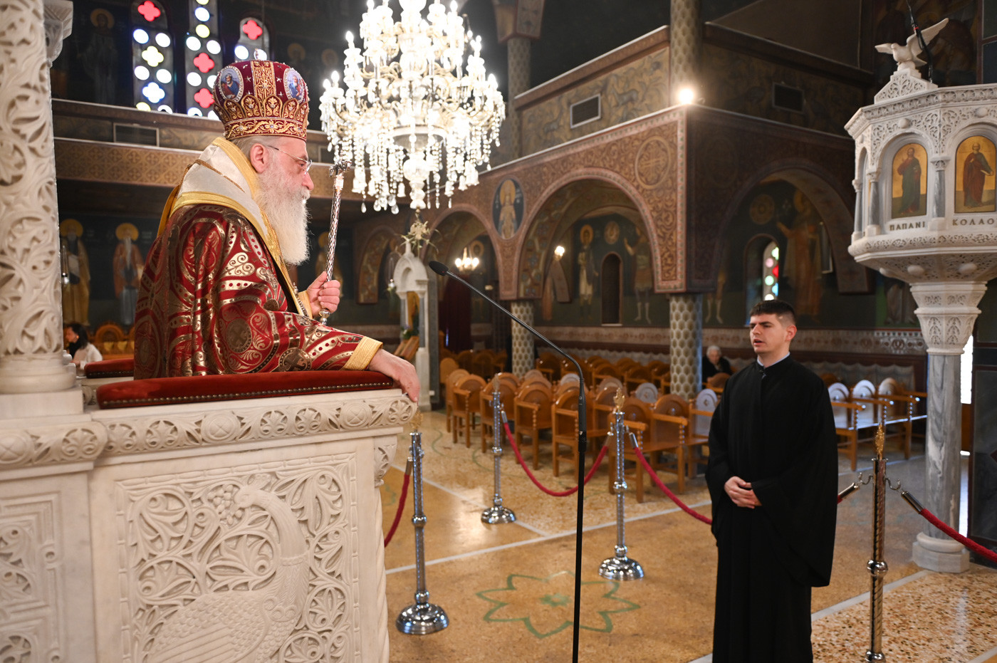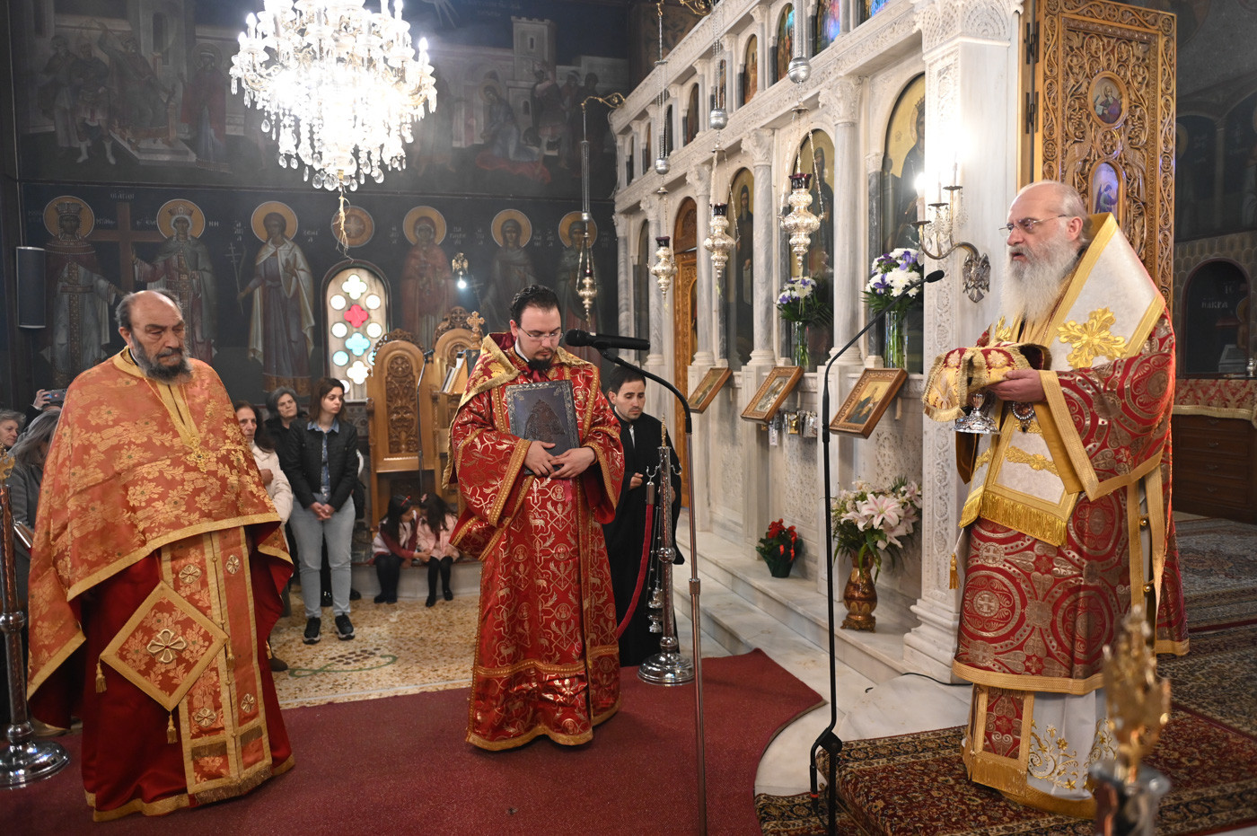 Προ της απολύσεως ευχήθηκε σε όλους καλό υπόλοιπο της Αγίας και Μεγάλης Εβδομάδας και με το καλό το Άγιο Πάσχα.