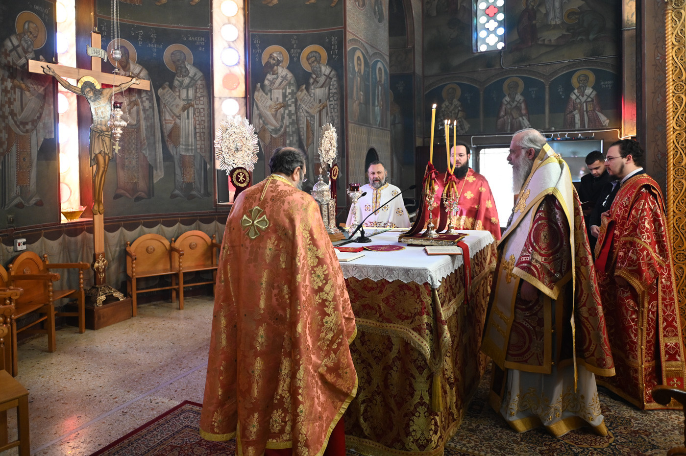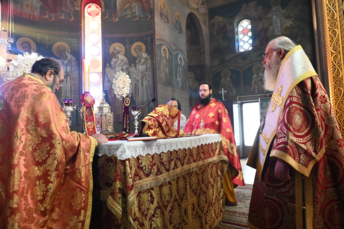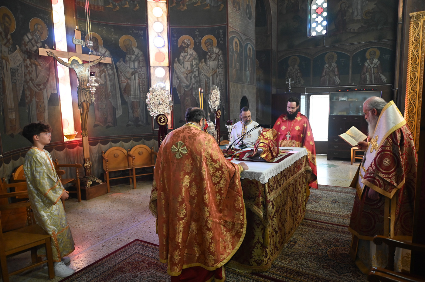 Την Ακολουθία του Εσπερινού και την Θεία Λειτουργία τέλεσε ο Σεβασμιώτατος Μητροπολίτης Μαντινείας και Κυνουρίας κ. Επιφάνιος, πλαισιούμενος από τους εφημερίους του Ι. Ναού.