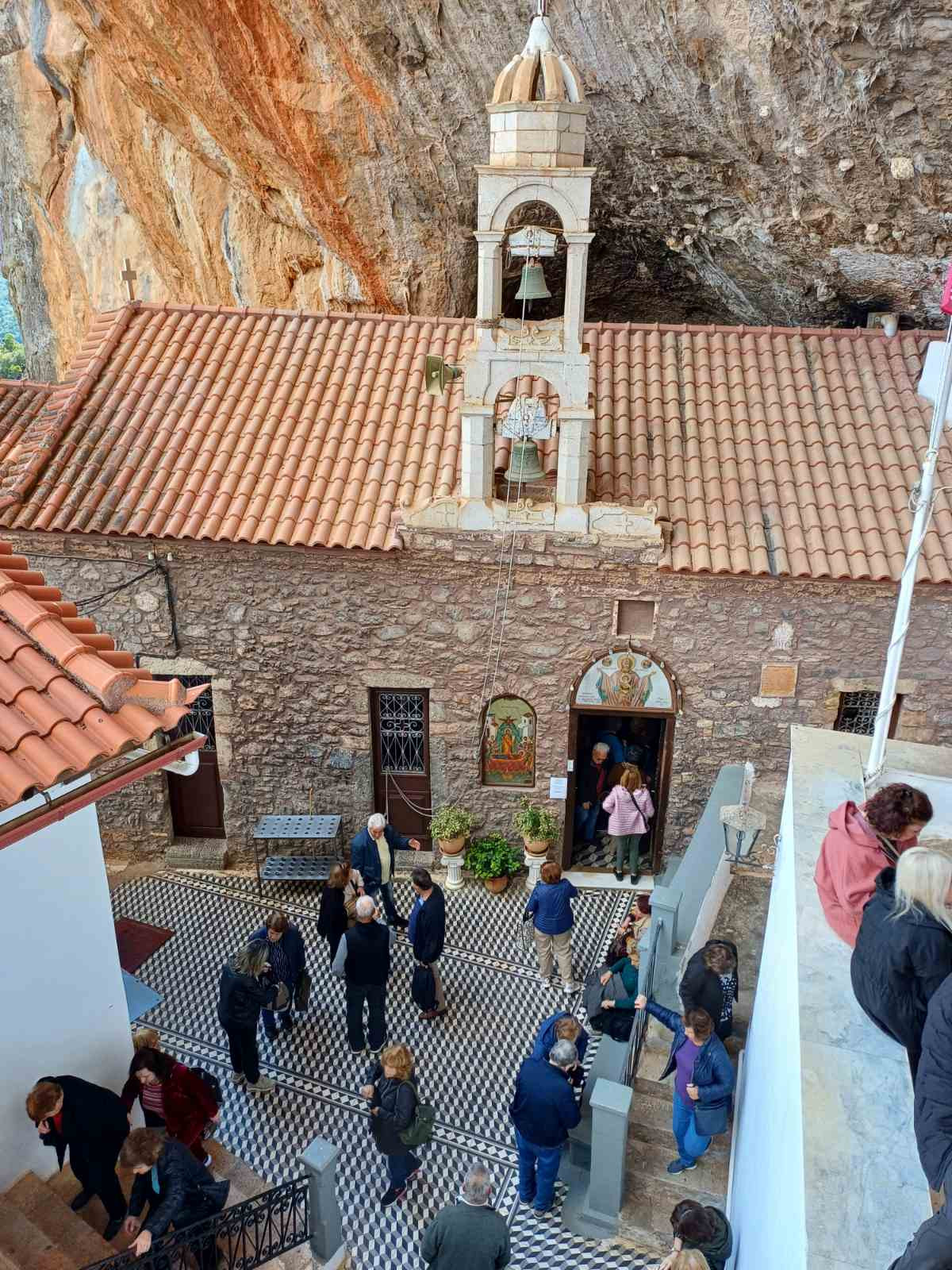 Η εκδρομή ξεκίνησε με στάση στο Λεωνίδιο για καφέ με τις παρέες να βρίσκουν χρόνο για επικοινωνία και χαλάρωση. Στη συνέχεια τα μέλη επισκέφθηκαν το μεγαλόπρεπο και επιβλητικό μνημείο της Αρκαδίας, το μοναστήρι της Παναγιάς Ελώνης , αφιερωμένο στην Κοίμηση της Θεοτόκου, κτισμένο επάνω στον απόκρημνο κοκκινωπό βράχο του Πάρνωνα .Στον ιερό τόπο της Μονής βίωσαν μια βαθιά πνευματική εμπειρία. Εσωτερική γαλήνη , πνευματική ανάταση, προσωπική αναζήτηση.