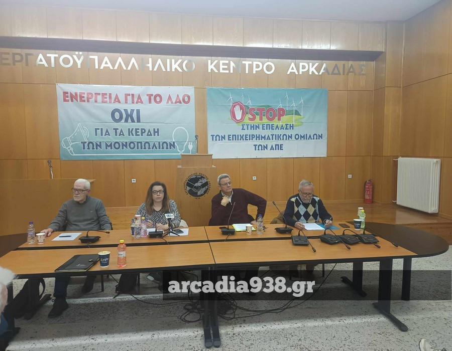 Κατάμεστο το Εργατικό Κέντρο Αρκαδίας στην εκδήλωση διαμαρτυρίας για τα αιολικά πάρκα