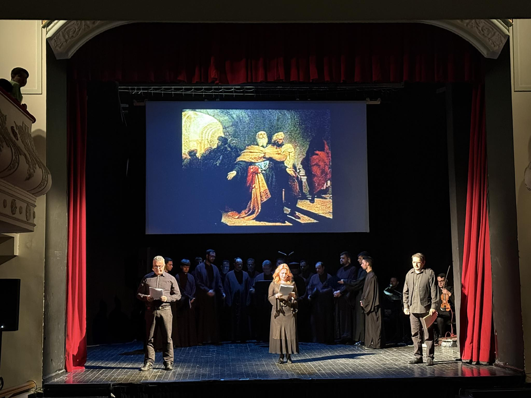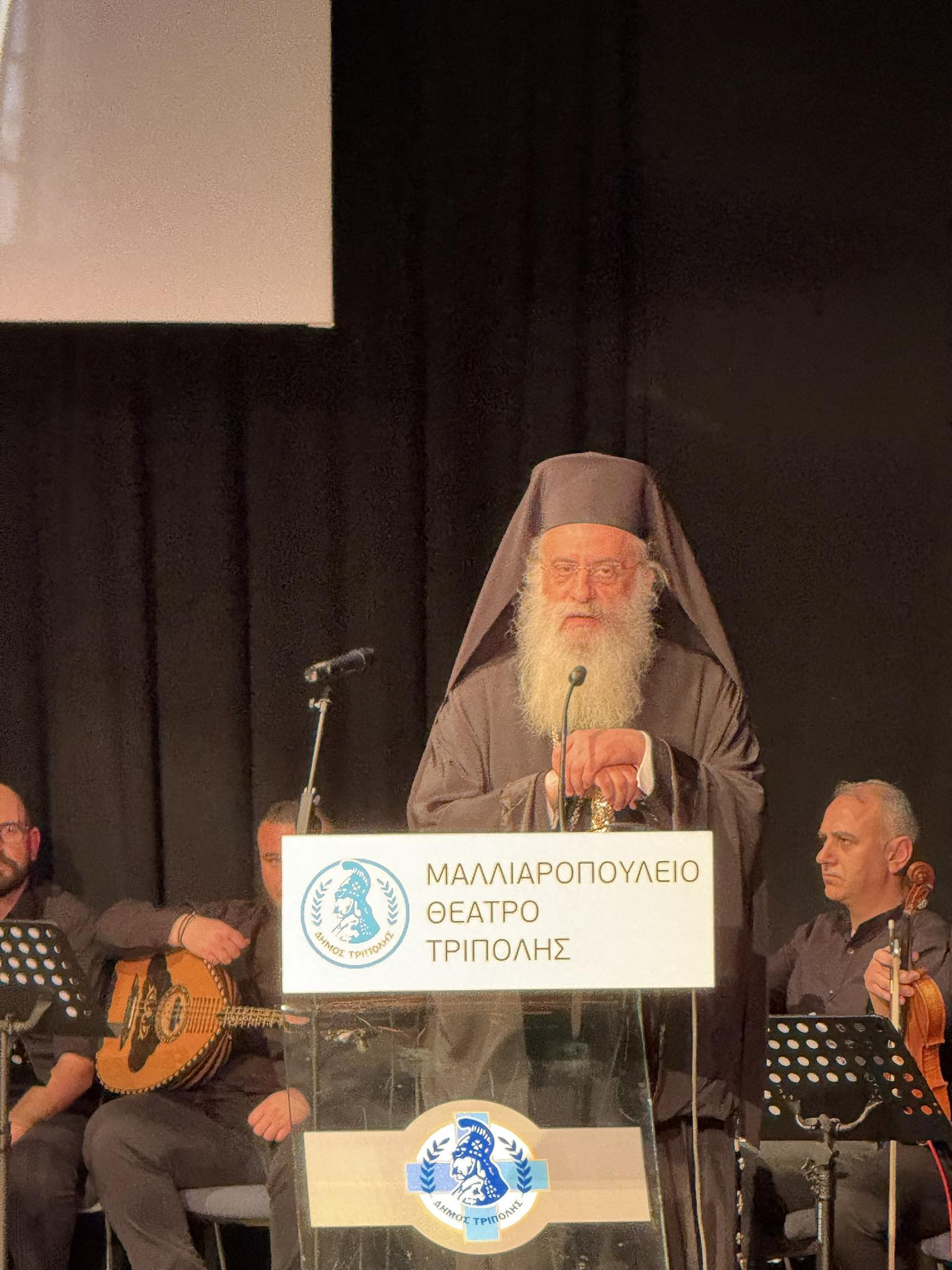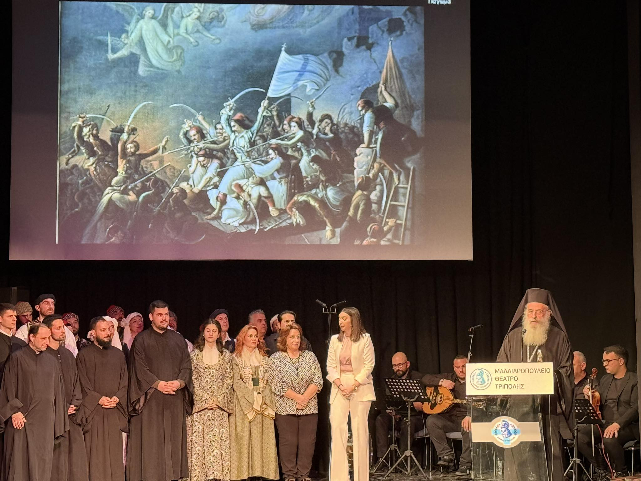Η Ιερά Μητρόπολις Μαντινείας και Κυνουρίας συγχαίρει και ευχαριστεί θερμά τα μέλη της Θεατρικής Ομάδας Τρίπολης : κ. Μαρίνο Δελή, κ. Μαριάννα Φιλοπούλου, κ. Παναγιώτη Σμυρνιώτη και την κ. Γιούλα Παράσχου ως υπεύθυνη παρασκηνίων, τον Βυζαντινό Χορό του Ι.Ν. Αγίας Βαρβάρας Τριπόλεως υπό την διεύθυνση του πρωτοψάλτου κ. Χαρίλαου Τσαρούχη, τις χορευτικές ομάδες του Λυκείου Ελληνίδων Τριπόλεως και του Χορευτικού Ομίλου Τριπόλεως, τους μουσικούς που πλαισίωσαν την παράσταση με τραγούδια ιστορικά : τον Δημήτρη Καραχάλιο (τραγούδι), την Μαρία Σούπου, μαθήτρια του Μουσικού Σχολείου Τρίπολης (τραγούδι), τον Βασίλη Βήλο (κλαρίνο), τον Παναγιώτη Ρουσάκο (λαούτο), τον Παναγιώτη Τσιλιμίγκρα (βιολί) και τον Χρήστο Λυκουρέτζο (κρουστά).