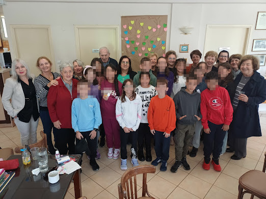 Τα παιδιά και την Εκπαιδευτικό τους κ. Ζαφείρη Θεοδώρα υποδέχθηκαν τα μέλη με μεγάλη χαρά , συγκίνηση και πολλά χαμόγελα . Η δράση ξεκίνησε με συνεντεύξεις των παιδιών στους παππούδες και τις γιαγιάδες. Οι ερωτήσεις τους εύστοχες γεμάτες ενδιαφέρον να μάθουν περισσότερα για το παρελθόν και τις ιστορίες των ηλικιωμένων (Πώς ήταν η ζωή όταν ήσασταν παιδί , με τι παιχνίδια παίζατε τότε, υπήρχαν εκδρομές ή σχολικές γιορτές; ) Στο τέλος της συνέντευξης τα παιδιά με αγάπη χάρισαν ζωγραφιές στα μέλη .