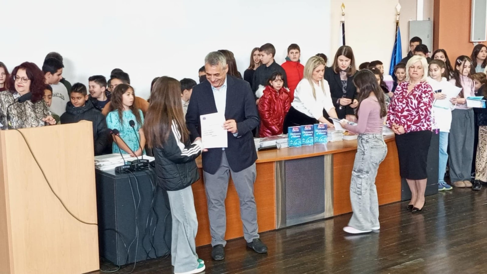 Στο Αμφιθέατρο της Σχολής Οικονομίας του Πανεπιστημίου Πελοποννήσου, για την ετήσια απονομή πιστοποιητικών γλωσσομάθειας που διοργάνωσε ο Σύλλογος Ιδιοκτητών Κέντρων Ξένων Γλωσσών Νομού Αρκαδίας, παρευρέθηκε ο Δήμαρχος Τρίπολης κ. Κώστας Τζιούμης, την Κυριακή (1.2.2026), όπου απηύθυνε χαιρετισμό και απένειμε πιστοποιητικά.