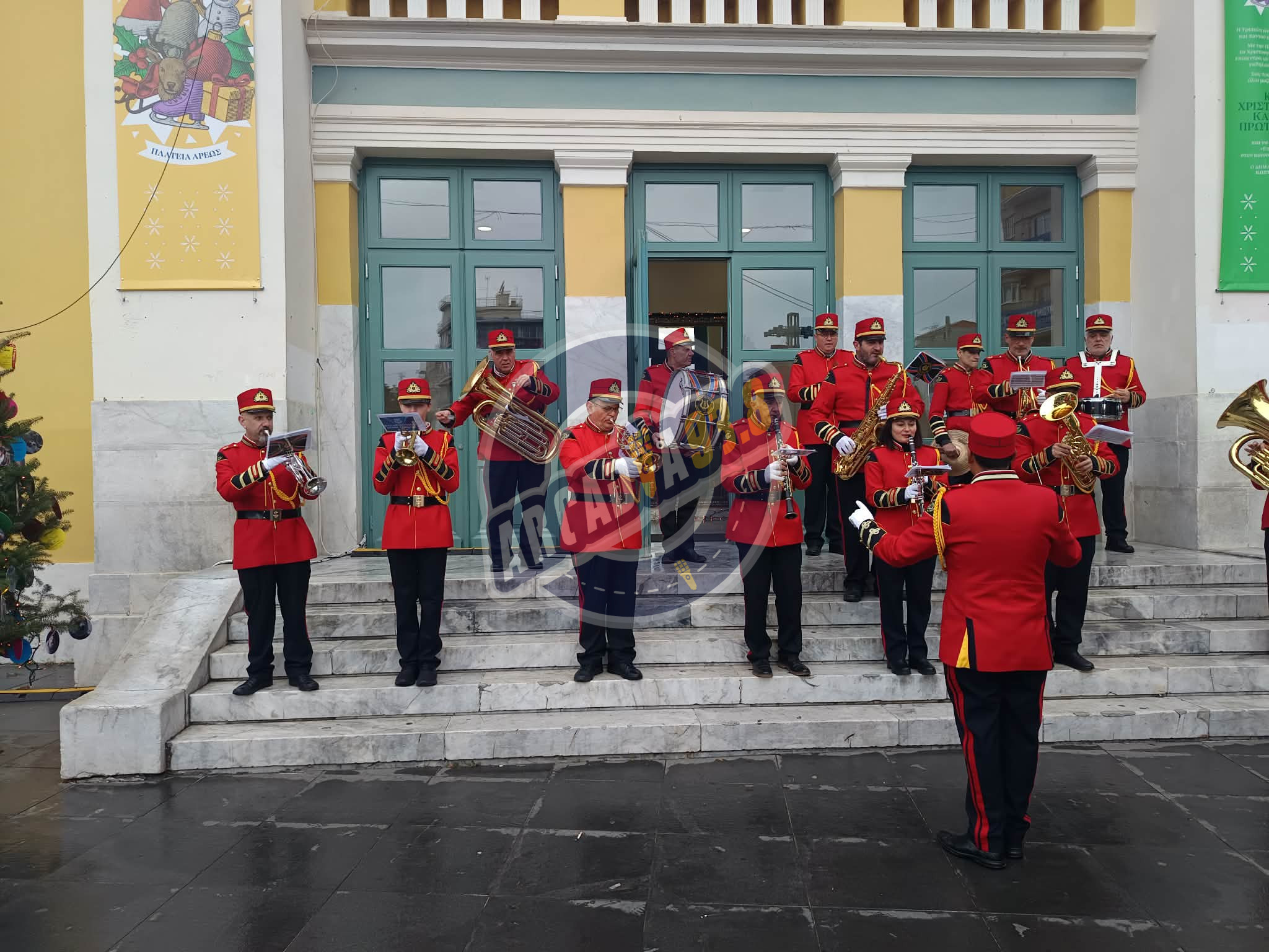 Φιλαρμονική του δήμου Τρίπολης και στρατιωτική μπάντα της διοίκησης κέντρων IV ΜΠ “Πελοπόννησος" έδιναν τον τόνο μπροστά από το Μαλλιαροπούλειο Θέατρο παιανίζοντας μελωδίες χριστουγεννιάτικες και πρωτοχρονιάτικες με αποτέλεσμα ν' αποτελέσουν πόλο έλξης για επισκέπτες, επισκέπτριες, δημότες και δημότισσες.