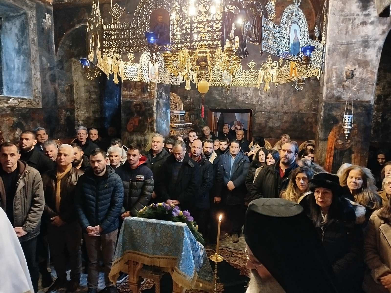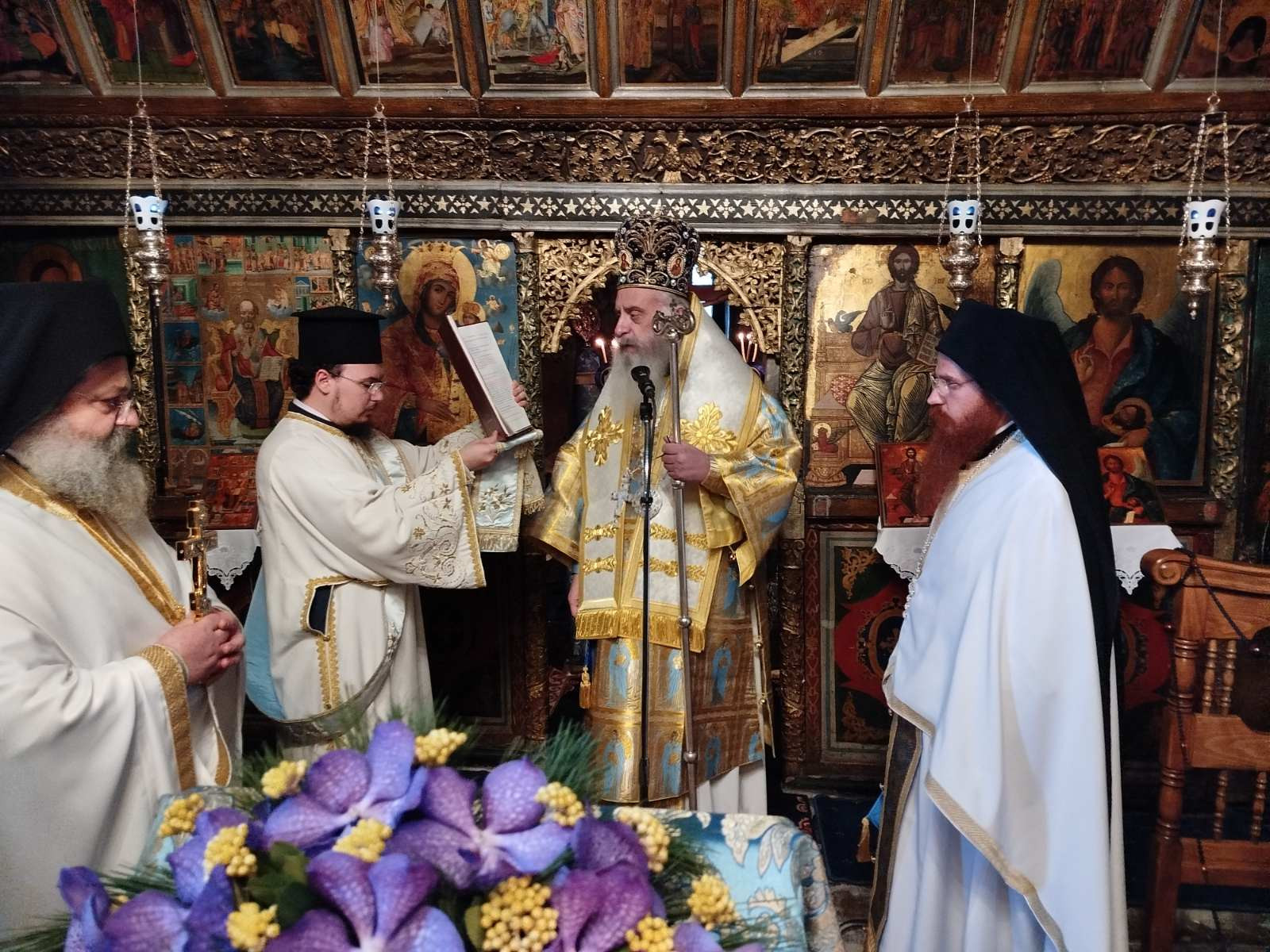 Στο μοναστήρι αυτό φυλάσσονται, σε περίτεχνη αργυρά λειψανοθήκη, τα μαρτυρικά και ευοδιάζοντα λείψανα των Αγίων Νεομαρτύρων Δημητρίου και Παύλου, των εν Τριπόλει μαρτυρησάντων. Τον Σεβασμιώτατο υποδέχθηκαν ο Πανοσιολογιώτατος Καθηγούμενος π. Μελχισεδέκ και η τιμία συνοδεία αυτού.