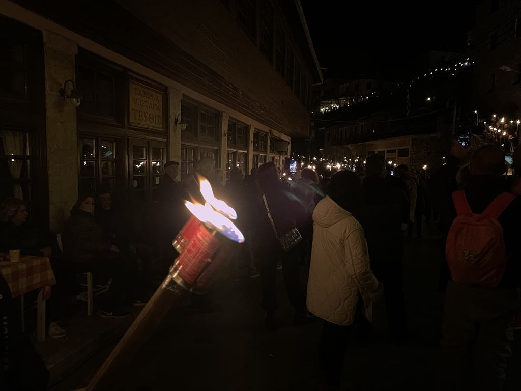 Μικροί και μεγάλοι, κρατώντας αυτοσχέδιες δάδες, ντυμένοι με παραδοσιακές φορεσιές, ξεχύθηκαν με τις δάδες και λυχνάρια στα χέρια, στα καλντερίμια της ιστορικής κωμόπολης, ακολουθώντας τα βήματα των προγόνων μας που, πριν 204 χρόνια, ύψωσαν τη φλόγα της ελευθερίας.