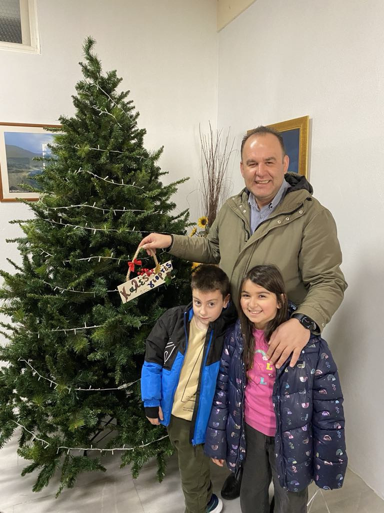 Τους μαθητές υποδέχτηκε ο Δήμαρχος, Ευστάθιος Κούλης, ο Αντιδήμαρχος Πάικος Αναγνωστόπουλος και το προσωπικό του Δήμου και όλοι μαζί, με ενθουσιασμό στόλισαν το χριστουγεννιάτικο δέντρο.