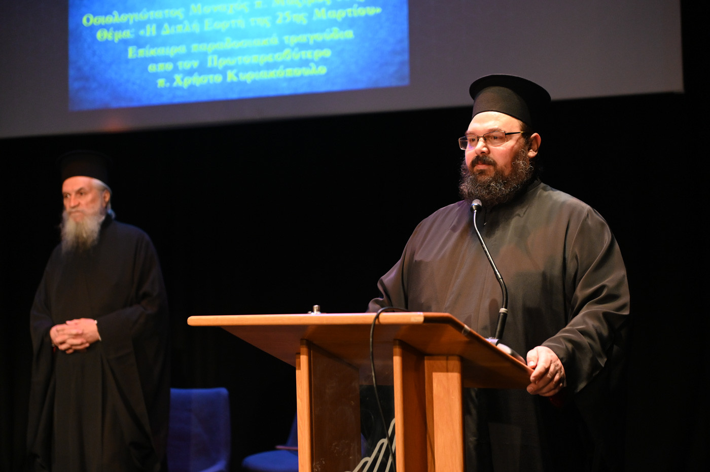 Ομιλητής της εκδήλωσης ήταν ο Οσιολογιώτατος Μοναχός π. Μάξιμος Ιβηρίτης με θέμα: "Ο Διπλός εορτασμός της 25ης Μαρτίου".