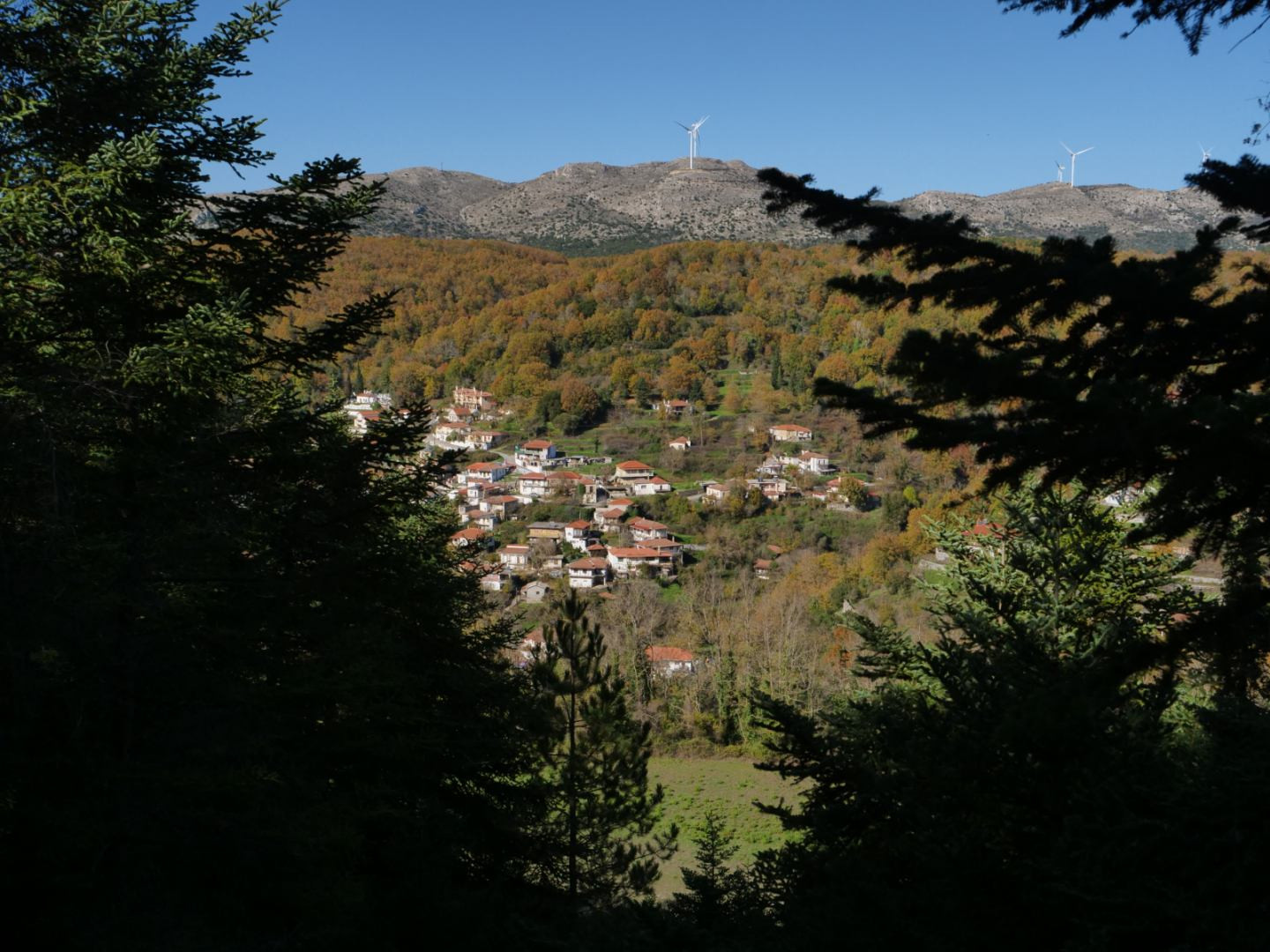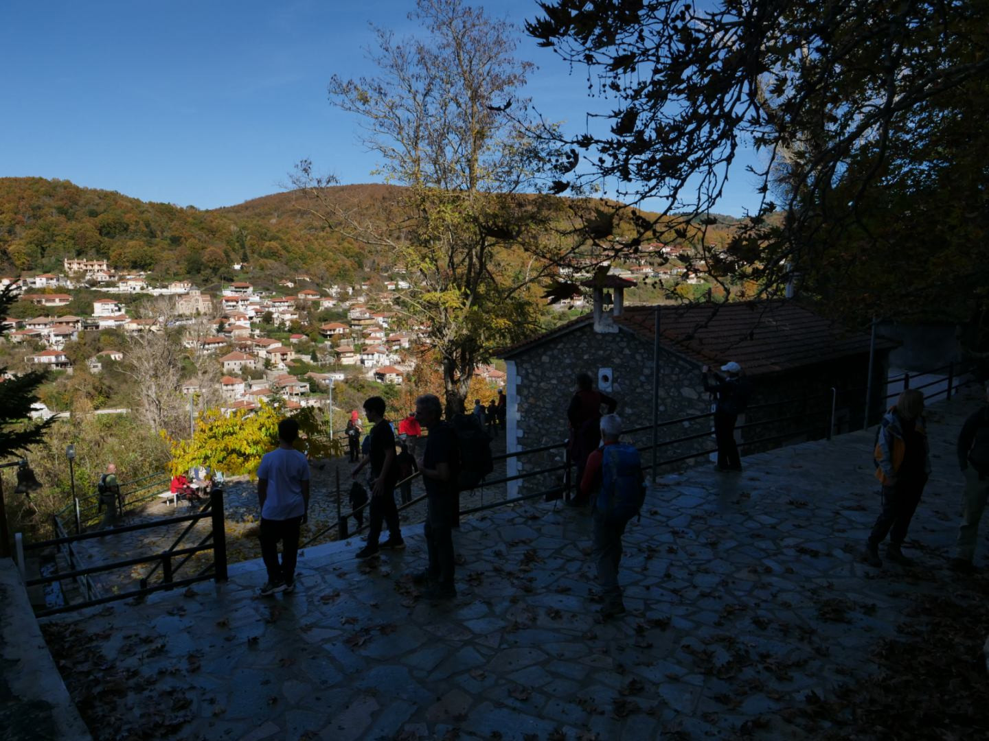 Με ελαφρά ανηφορική κλίση στην αρχή, οι κυκλικές πορείες κινηθήκαν σε χωματόδρομους, σε πολλά σημεία καλυμμένους από τα φύλλα των δένδρων. Το θέαμα ήταν εντυπωσιακό. Τόσο κοντά στην Τρίπολη, μόλις 32 χλμ, βρίσκεται ένας μικρός παράδεισος! Λίγο πριν φτάσουμε στο χωριό, το αγναντέψαμε από απέναντι, μια εικόνα ειδυλλιακή. Πιστεύουμε ότι όλοι έμειναν, σε μεγάλο βαθμό, ικανοποιημένοι, ιδίως οι μικροί ορειβάτες μας.