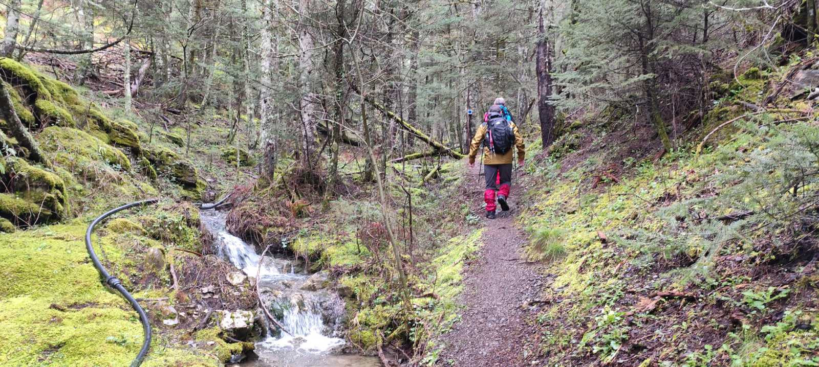 Αφού δροσιστήκαμε στα νερά της βρύσης συνεχίσαμε την πορεία μέσα σε ένα πανέμορφο περιβάλλον, περνώντας από καταπράσινα ελατοδάση, ερμητικά ρυάκια και μια οργιάζουσα φύση.