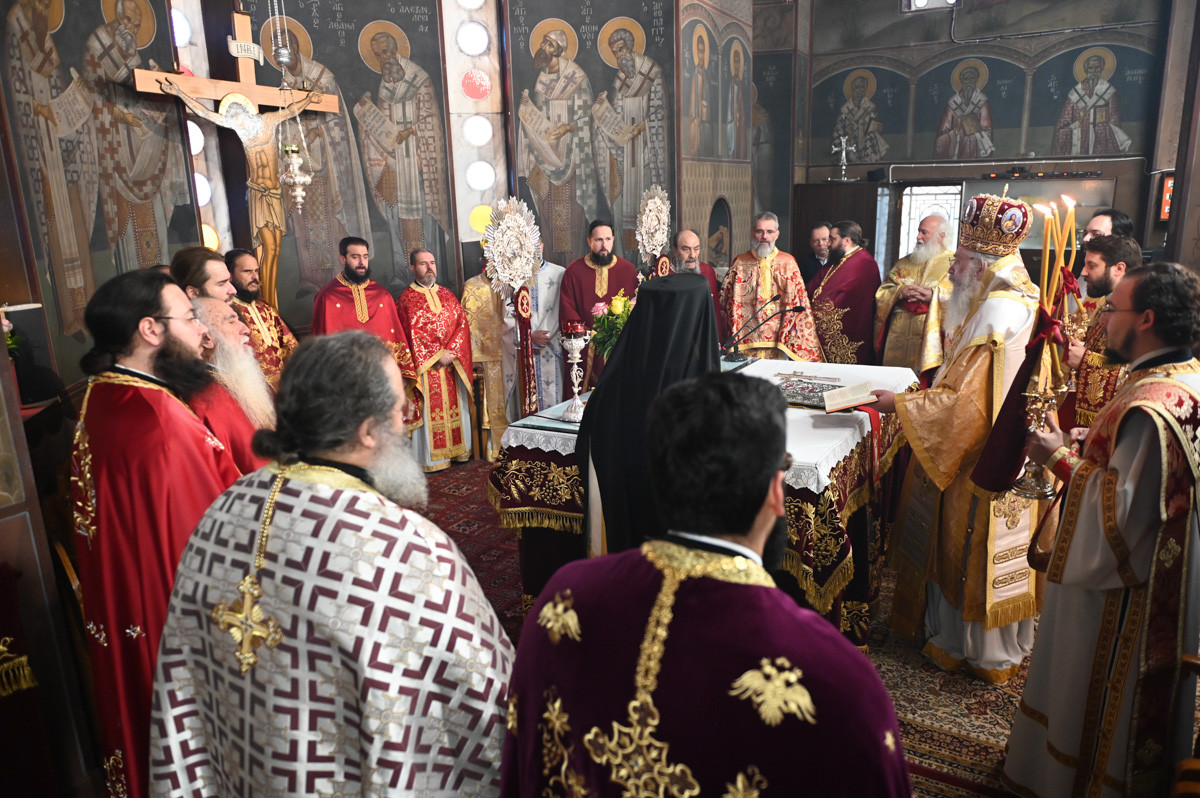 Του Όρθρου και της Δισαρχιερατικής Θείας Λειτουργίας προέστη ο Σεβ. Μητροπολίτης Μαντινείας και Κυνουρίας κ. Επιφάνιος, συλλειτουργούντος του Θεοφιλ. Επισκόπου Τεγέας κ. Θεοκλήτου.