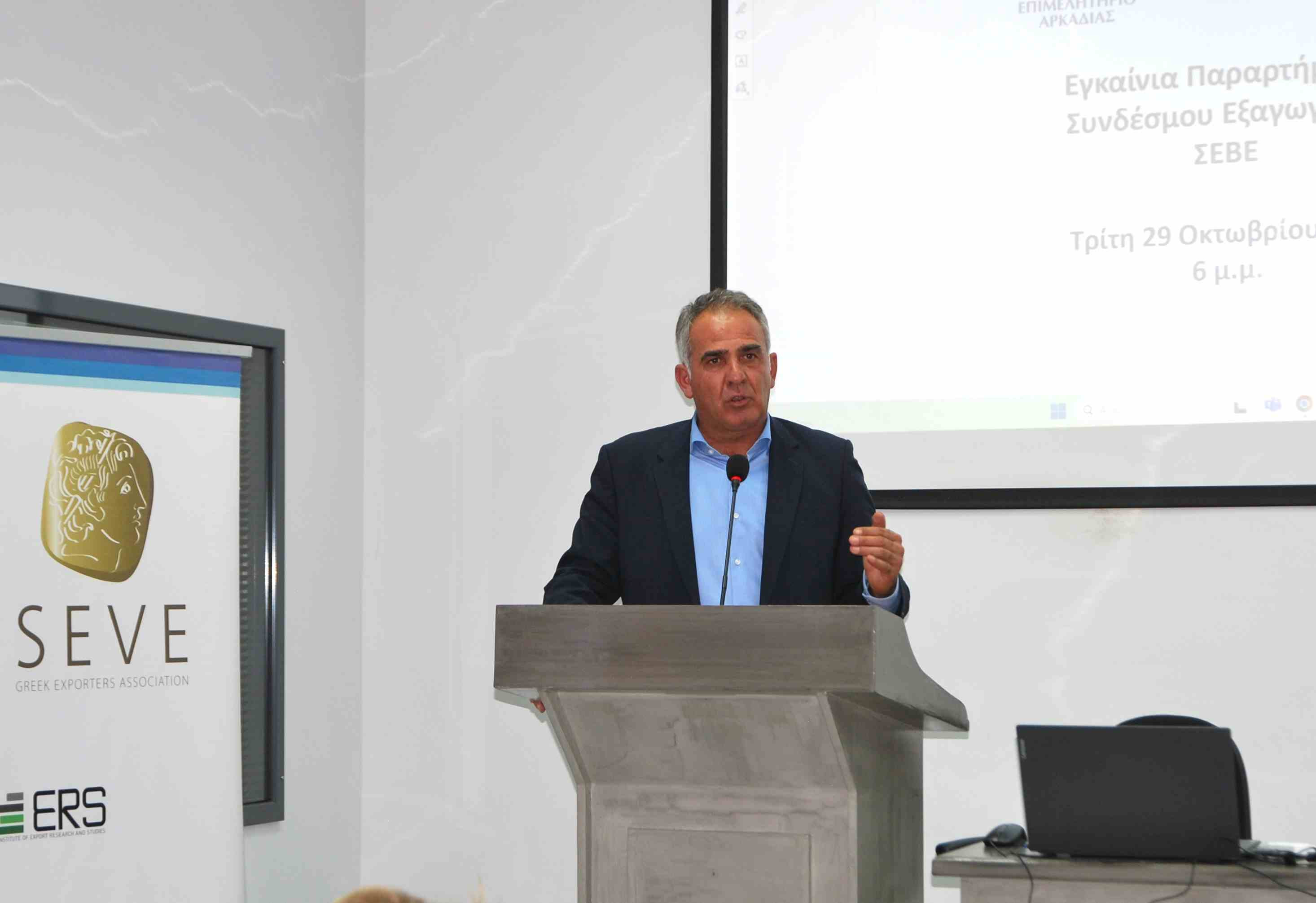 Τις εργασίες της εκδήλωσης εγκαινίων του Παραρτήματος, την Τρίτη 29 Οκτωβρίου, άνοιξε ο κ. Ανδρέας Σύριος, Αν. Πρόεδρος του Τμήματος Υπηρεσιών του Επιμελητηρίου Αρκαδίας και συντονιστής της εκδήλωσης, ο οποίος αφού ευχαρίστησε θερμά τους συμμετέχοντες ανέφερε ότι με τα εγκαίνια του νέου Παραρτήματος Εξαγωγέων υλοποιείται η δέσμευση του Επιμελητηρίου, μετά την υπογραφή μνημονίου συνεργασίας στην έκθεση Πελοπόννησος Expo, για τη στήριξη της επιχειρηματικότητας σε όλη την Πελοπόννησο