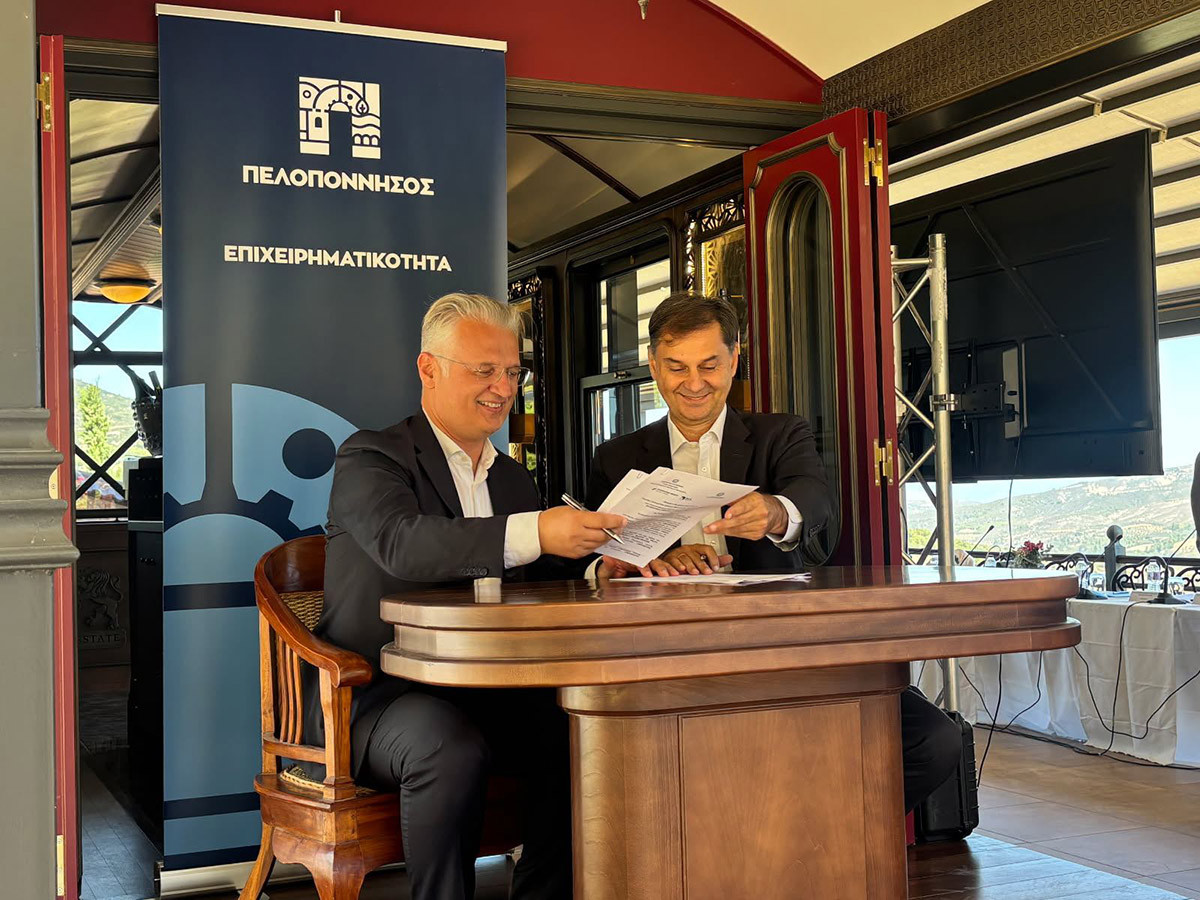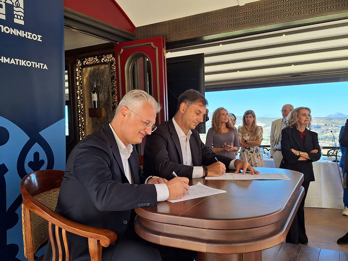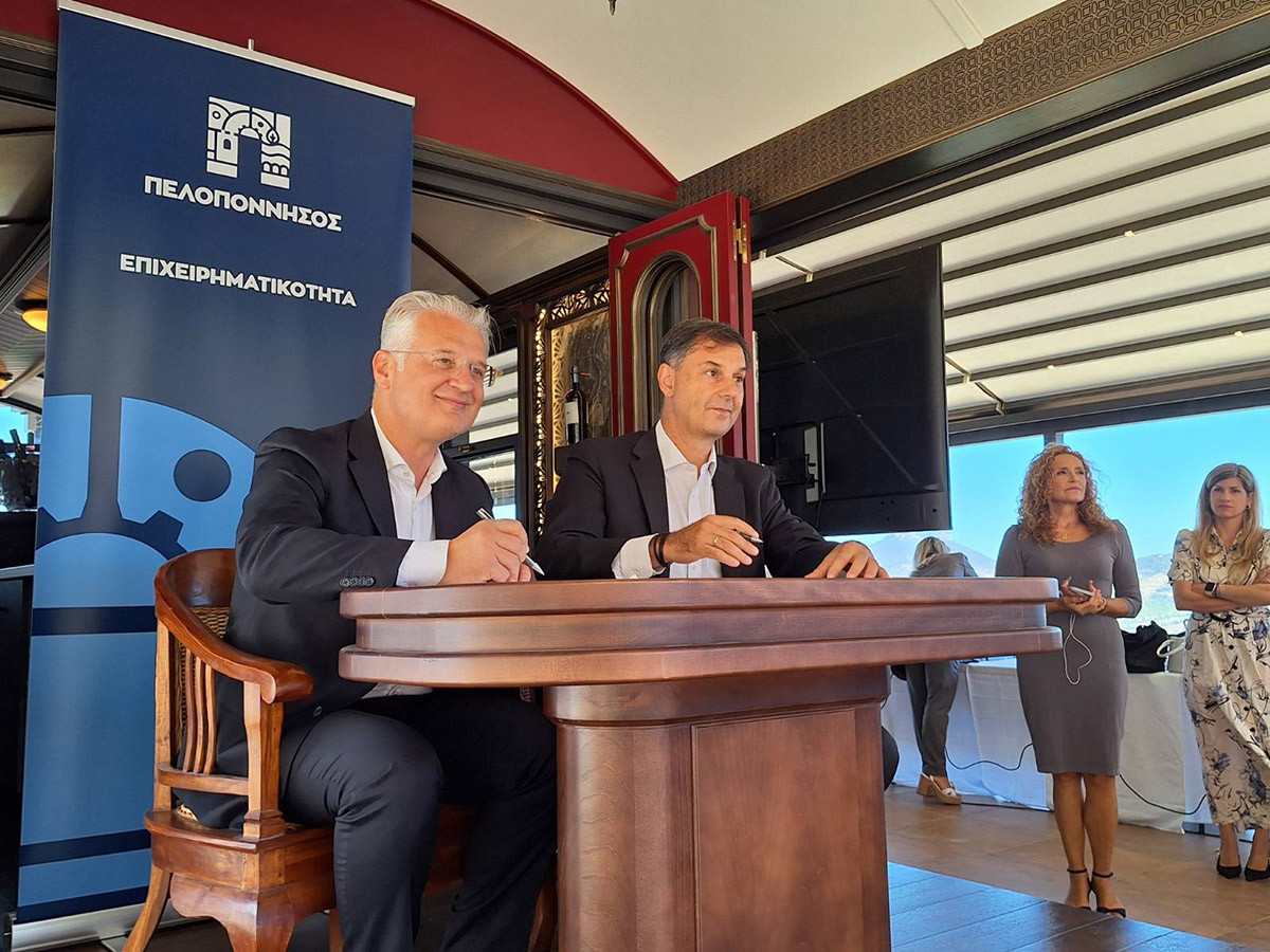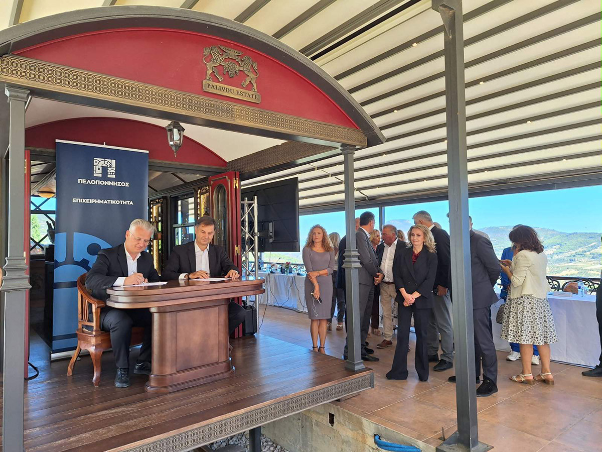 Μνημόνιο Συνεργασίας μεταξύ της Γενικής Γραμματείας Διεθνών Οικονομικών Σχέσεων & Εξωστρέφειας, των φορέων εξωστρέφειας του Υπουργείου Εξωτερικών Enterprise Greece και Export Credit Greece και της Περιφέρειας Πελοποννήσου, για την λειτουργία Γραφείου Εξωστρέφειας στην Περιφέρεια υπεγράφη τη Δευτέρα στη Νεμέα.