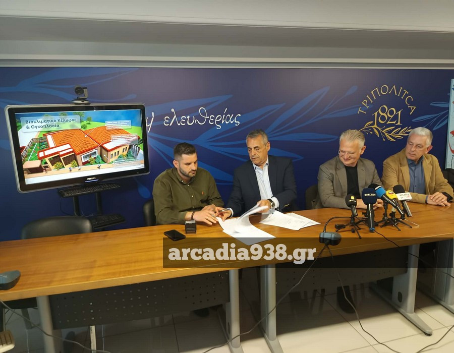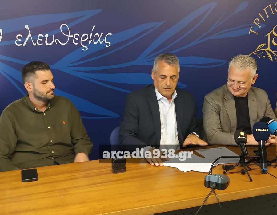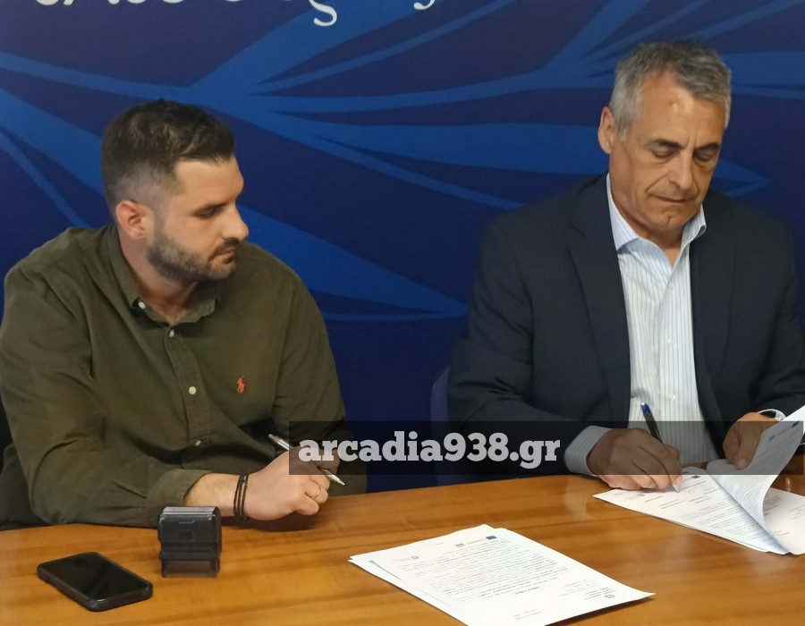 Παρουσία του Περιφερειάρχη Πελοποννήσου, κ. Πτωχού και του Αντιπεριφερειάρχη, κ. Λαμπρόπουλου, υπεγράφη σήμερα η σύμβαση μεταξύ του Δήμου Τρίπολης και του ανάδοχου του παραπάνω έργου.