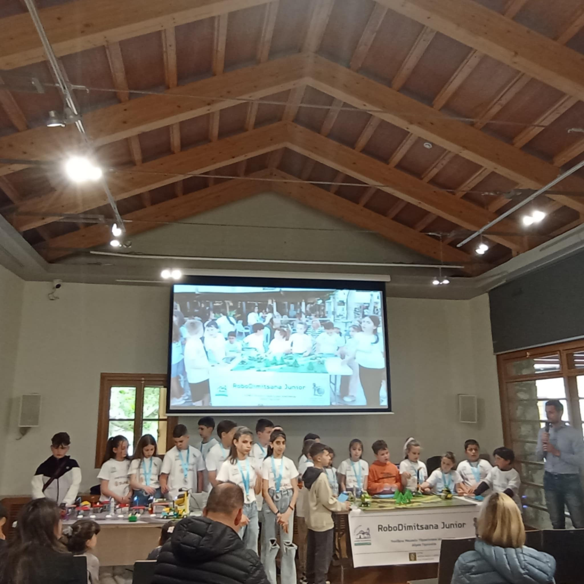 Ο Δήμαρχος Γορτυνίας σε εκδήλωση παρουσίασης έργων ρομποτικής από τα βραβευθέντα παιδιά της Δημητσάνας