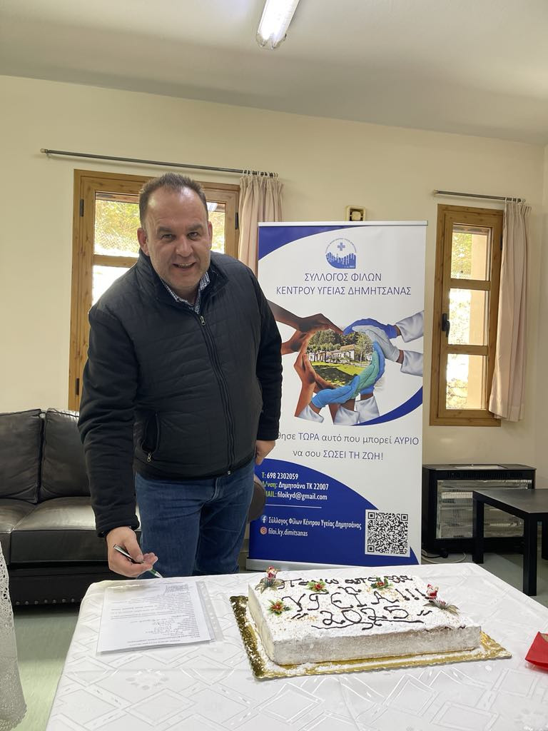 Στο χαιρετισμό του ανέφερε: «Η ετήσια κοπή πίτας δεν ήταν μόνο μια ευχάριστη κοινωνική εκδήλωση, αλλά και μια αφορμή για να εκτιμήσουμε την αξία της δημόσιας υγείας σε περιοχές που, όπως η Δημητσάνα, δεν έχουν εύκολη πρόσβαση σε μεγάλες νοσοκομειακές μονάδες.