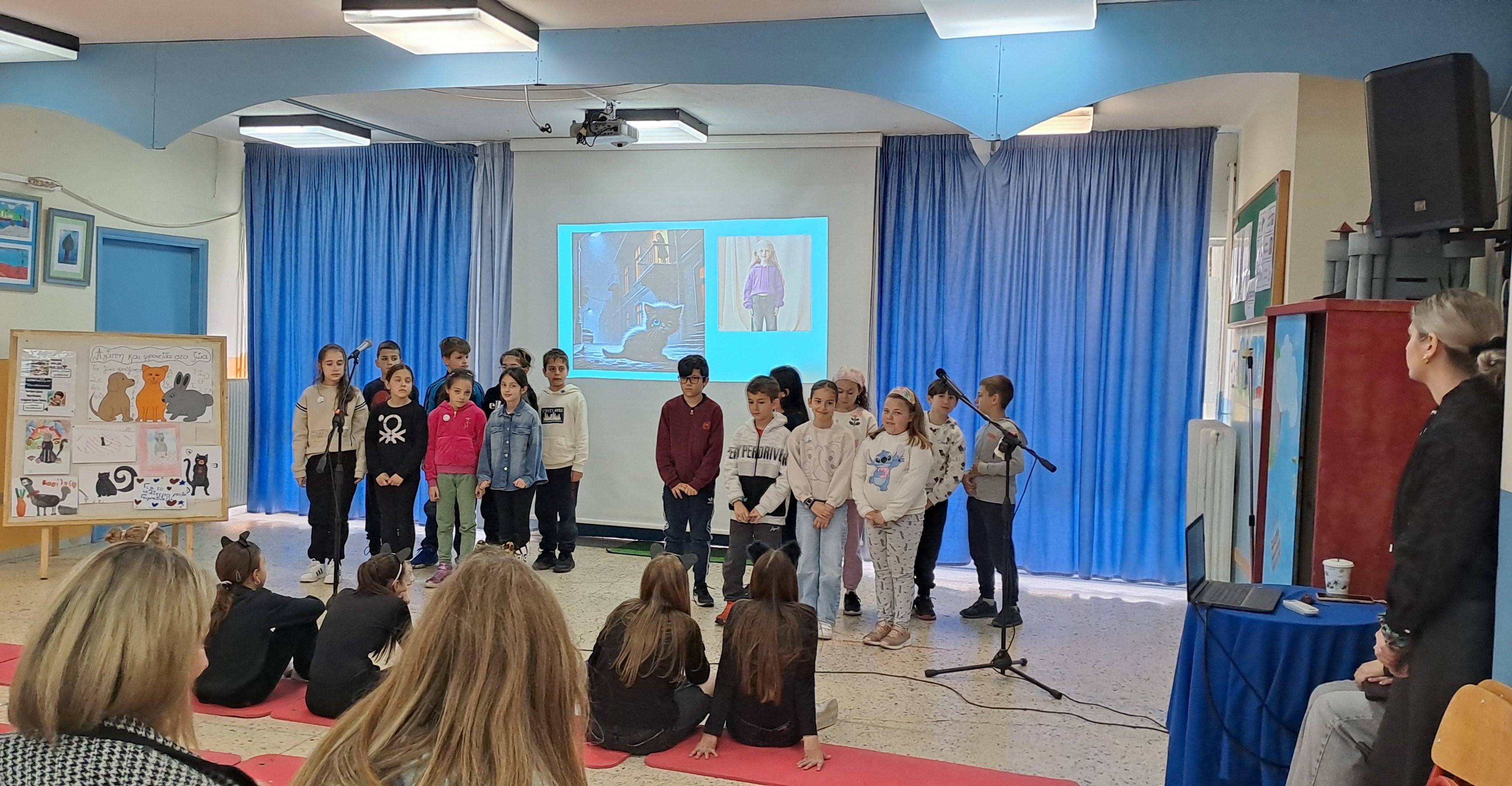 Με μεγάλη χαρά και συγκίνηση, η σχολική μας μονάδα τίμησε την Πανελλήνια Ημέρα Σχολικής Φιλοζωίας με μια ξεχωριστή εκδήλωση αφιερωμένη στον Γκομπολίνο, τον μικρό μονόφθαλμο γάτο που έγινε σύμβολο αγάπης, αποδοχής και υπευθυνότητας.