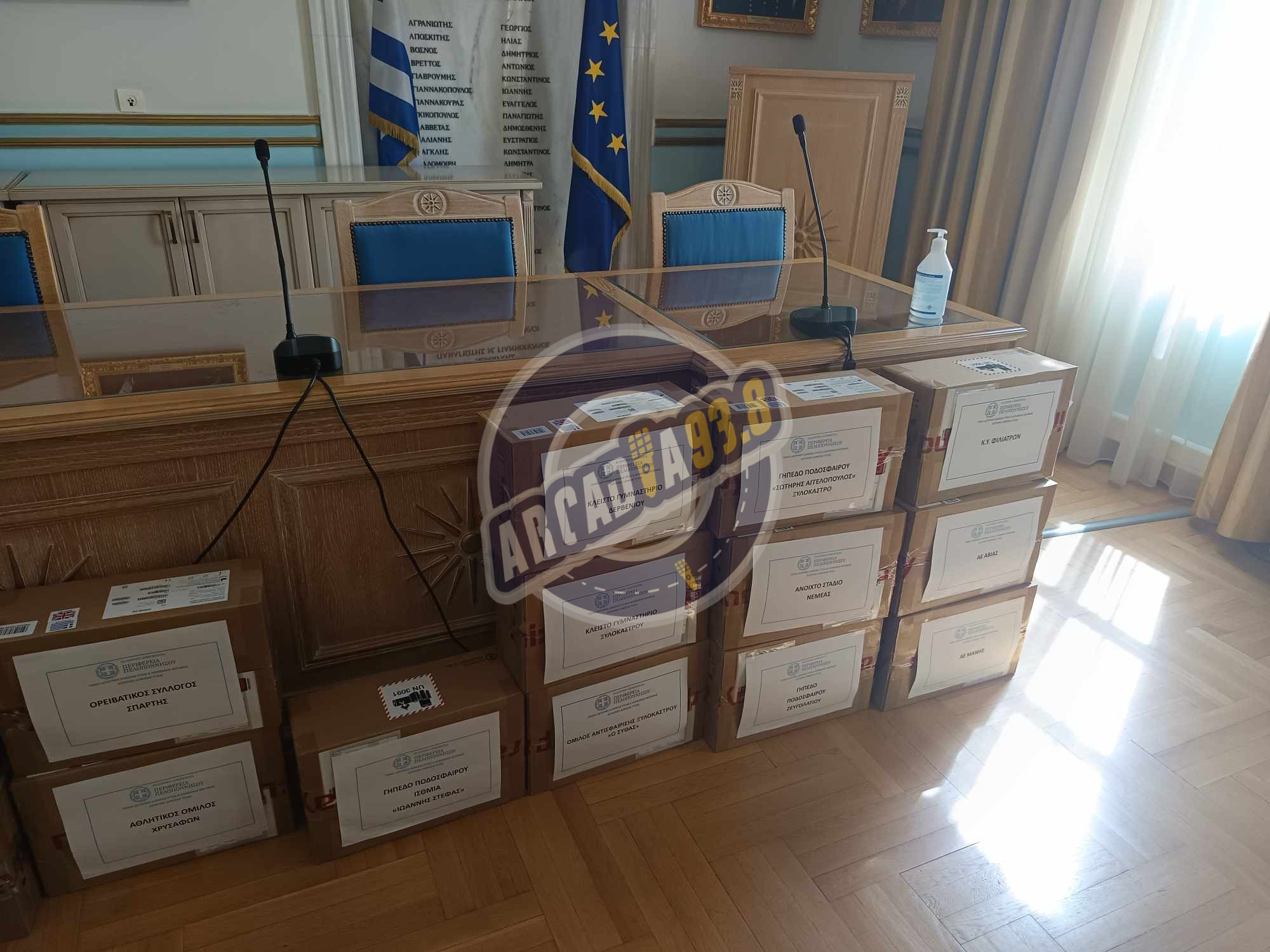 Ηλεκτρονικοί απινιδωτες παραδόθηκαν σήμερα σε αθλητικά σωματεία και φορείς των Περιφερειακών Ενοτήτων της Πελοποννήσου, παρουσία του Περιφερειάρχη, κ. Πτωχού, και του αρμόδιου Αντιπεριφερειάρχη, κ. Μέλλου.