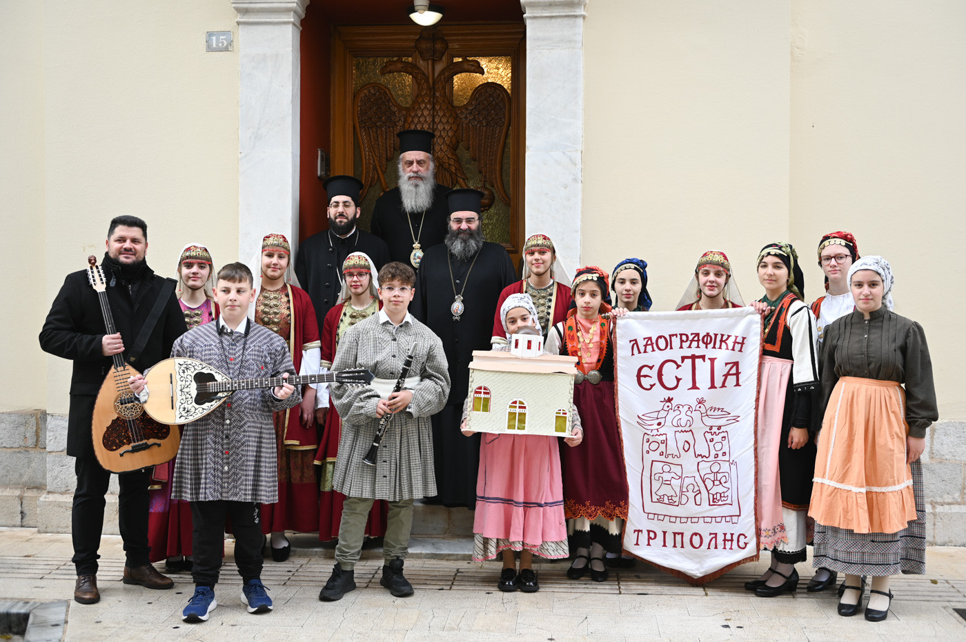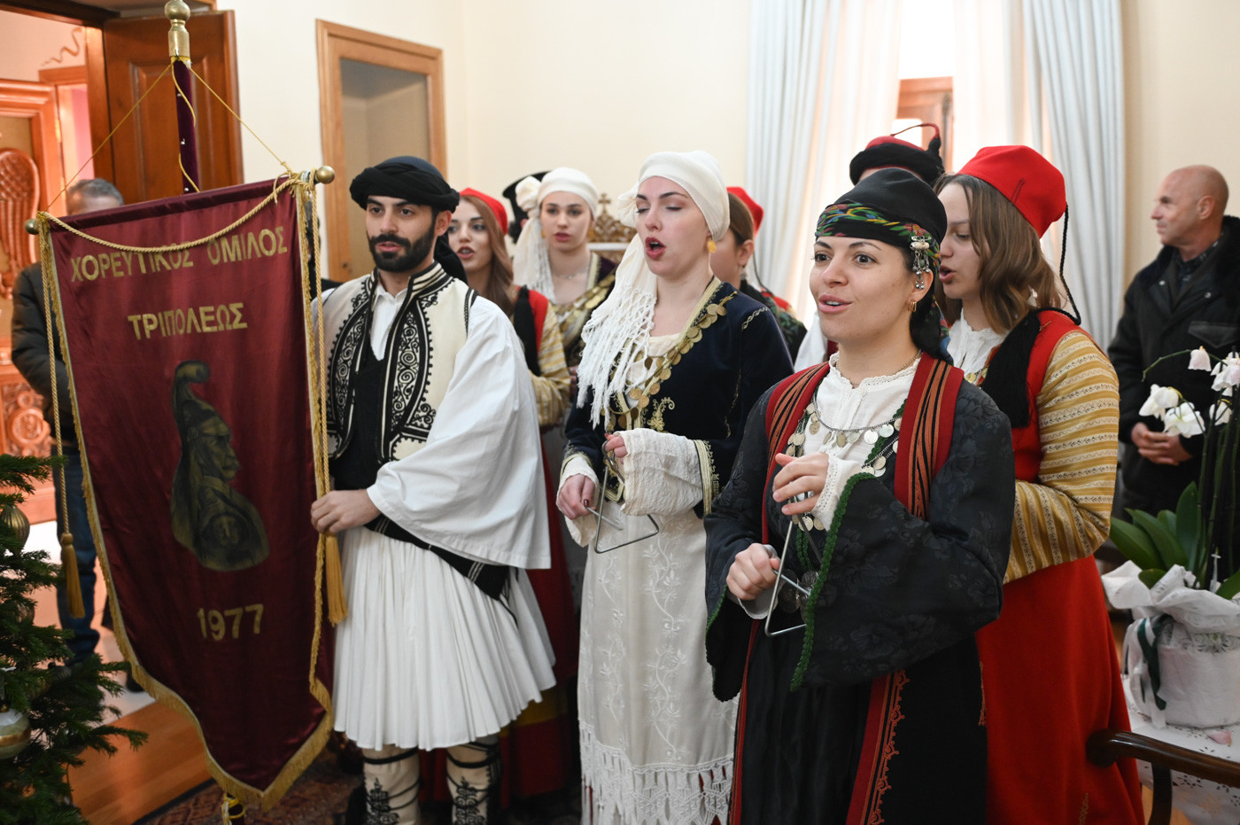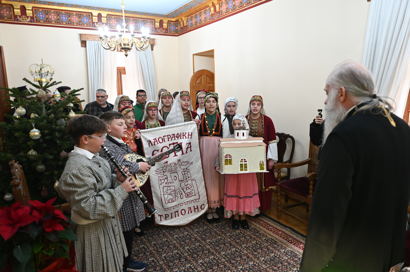 Χριστουγεννιάτικα κάλαντα και παραδοσιακά τραγούδια έψαλλαν σήμερα, παραμονή των Χριστουγέννων στον Σεβασμιώτατο Μητροπολίτη Μαντινείας και Κυνουρίας κ. Επιφάνιο φορείς της πόλεως, αλλά και ομάδες νέων.