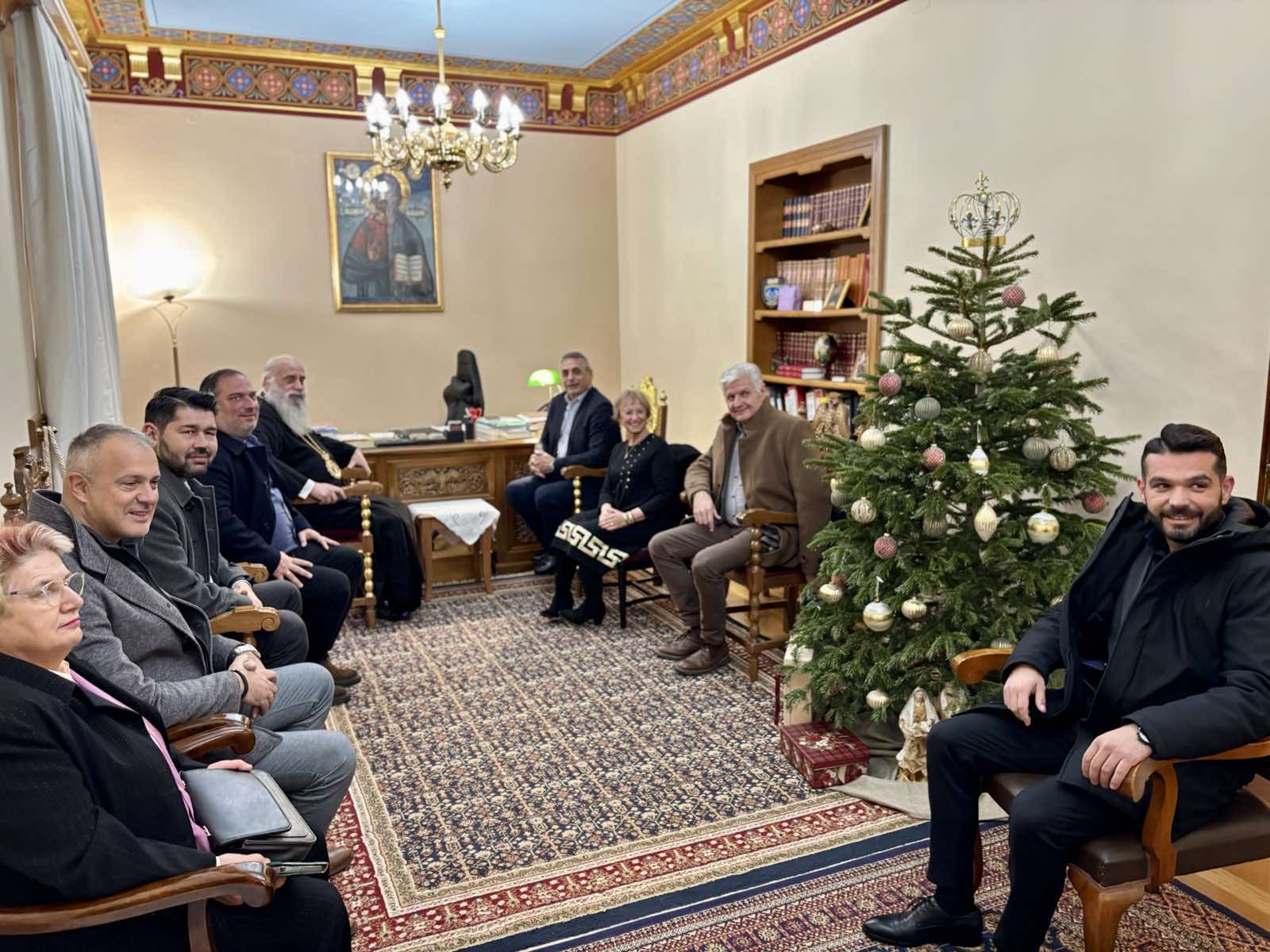 Στη συνέχεια, δέχθηκε εθιμοτυπική επίσκεψη από τον Δήμαρχο Τρίπολης κ. Κωνσταντίνο Τζιούμη και τους Αντιδημάρχους του Δήμου για ανταλλαγή εορταστικών ευχών.