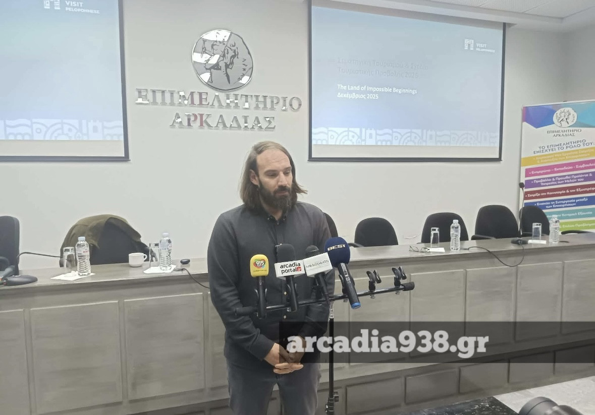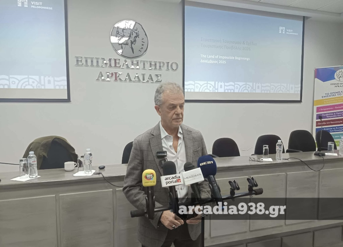 Στην αίθουσα εκδηλώσεων του Επιμελητηρίου Αρκαδίας πραγματοποιήθηκε, από τον αρμόδιο Αντιπεριφερειάρχη, κ. Θάνο Μιχελόγγονα, παρουσίαση του σχεδιασμού ως προς την τουριστική προβολή της Περιφέρειας Πελοποννήσου για το 2026.