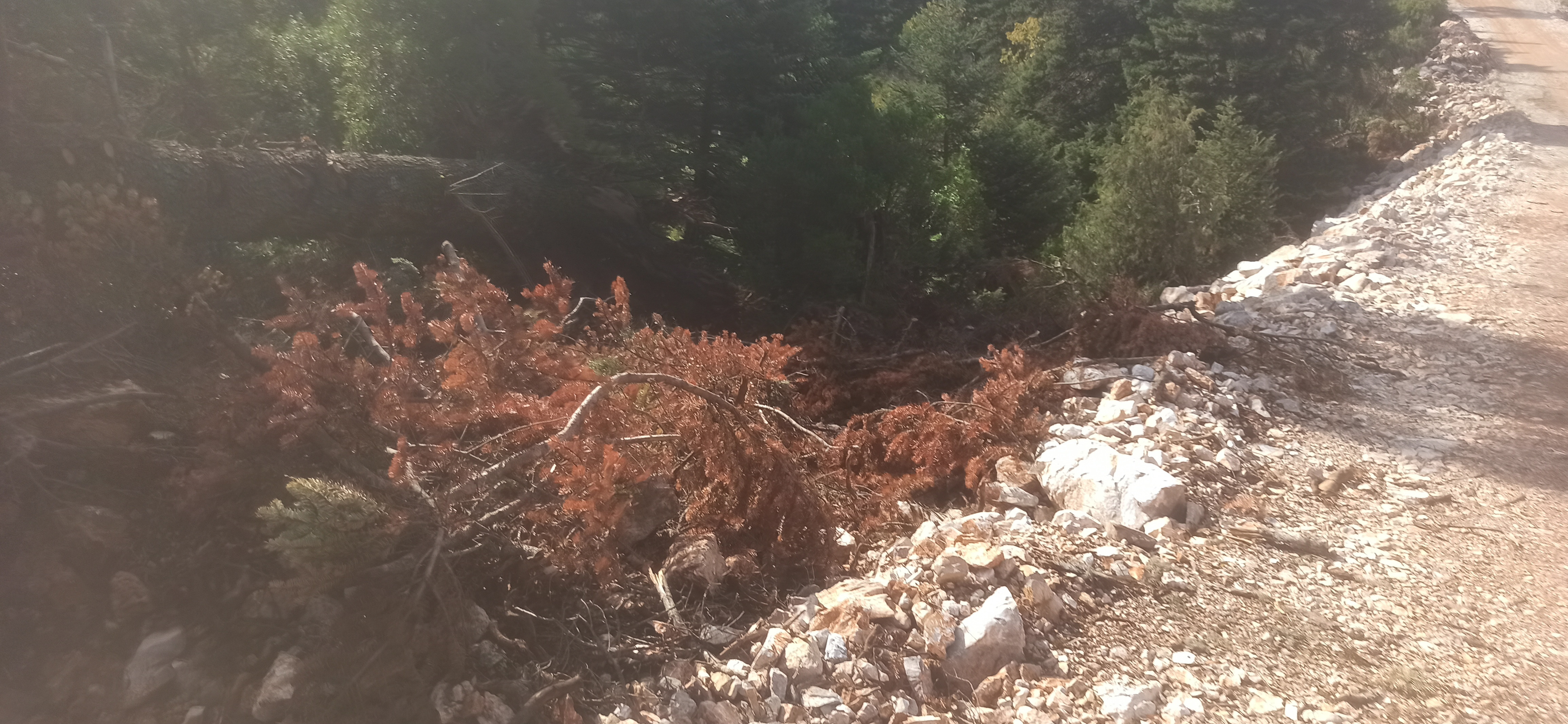 Οι φωτογραφίες είναι εύγλωτες, τεράστιοι εκβραχισμοί και εκσκαφές, δρόμοι λεωφόροι, πέταλα πλατείες 30 και 40 μέτρων, κομμένοι κορμοί δέντρων και είμαστε ακόμα στην αρχή. Σκεφθείτε τι θα γίνει στο πυκνό δάσος ή στις βουνοκορυφές που θα στηθούν οι ανεμογεννήτριες. Δεν φτάνει που το ελατόδασος στην περιοχή (που σημειωτέων είναι το νοτιότερο ελατόδασος της Ευρώπης) είναι εγκαταλελειμμένο και απροστάτευτο από το κράτος, έρχονται και τα αρπαχτικά των ΑΠΕ να το αποτελειώσουν.