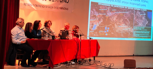 Μεγάλο ενδιαφέρον προκάλεσε η εκδήλωση - συζήτηση για τις Ανεμογεννήτριες στον Πάρνωνα και στην Ζάβιτσα, αλλά και τις επιπτώσεις τους στο περιβάλλον και τις ζωές μας, στο Άστρος Κυνουρίας, το Σάββατο 5/4. Μια εκδήλωση που διήρκεσε 4 ώρες στην κατάμεστη αίθουσα του Ιδρύματος Ζαφείρη, όπου περισσότερα από 300 άτομα άκουσαν με προσοχή τις ομιλίες που έγιναν από: