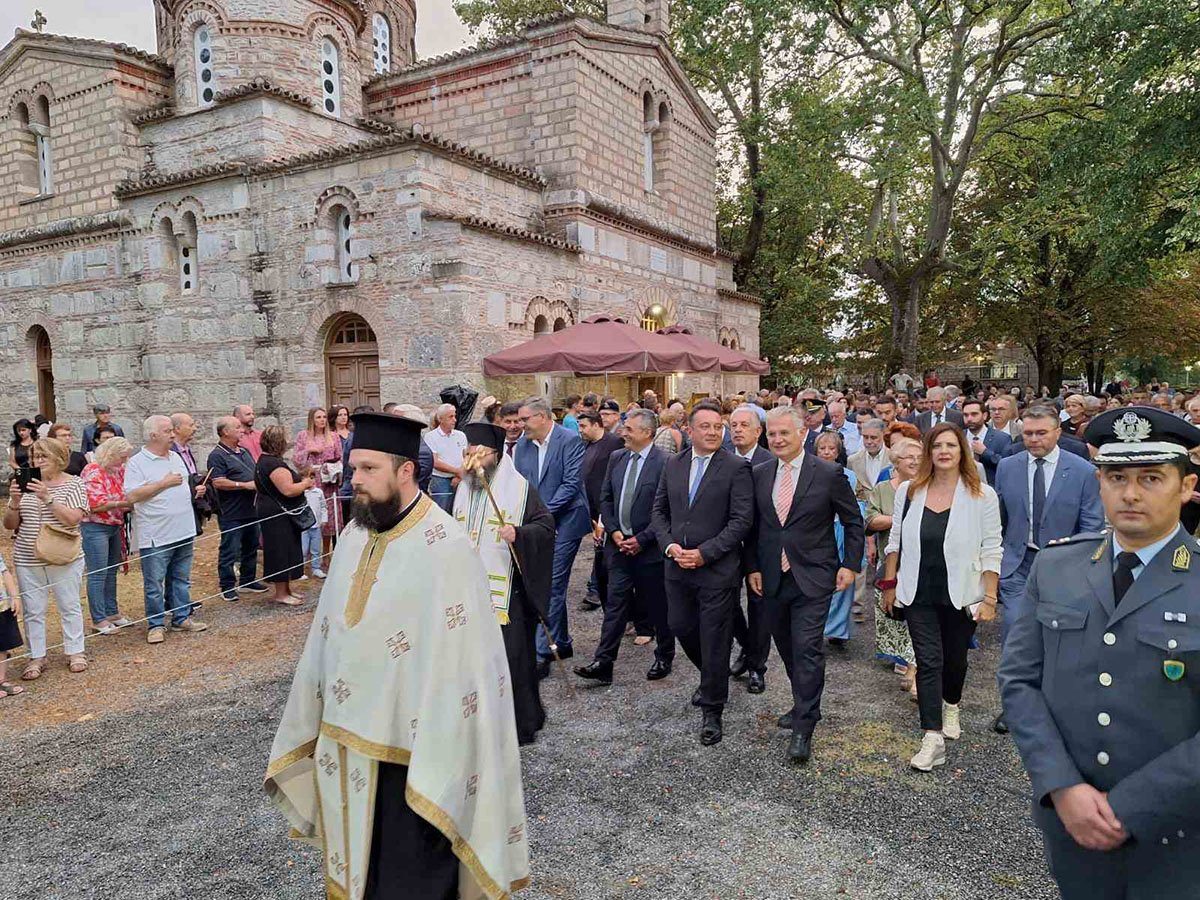 Νωρίτερα, τελέστηκε Μέγας Αρχιερατικός Εσπερινός, προεξάρχοντος του Θεοφιλεστάτου Επισκόπου Τεγέας κ. Θεοκλήτου, ενώ στις 8:00 μ.μ. πραγματοποιήθηκε η Λιτάνευση της Εικόνας της Παναγίας.