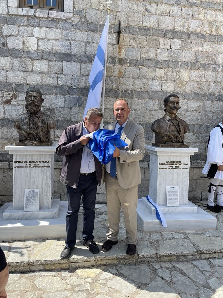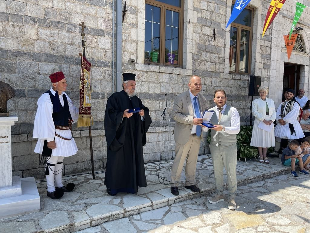 Ο Αντιπρόεδρος της Βουλής και Βουλευτής Αρκαδίας κος Οδυσσέας Κωνσταντινόπουλος, απόγονος του ήρωα Χρήστου Παναγούλια, στον χαιρετισμό του αναφέρθηκε στη σημασία της διατήρησης της εθνικής μνήμης και της τιμής προς τους ήρωες του τόπου μας.