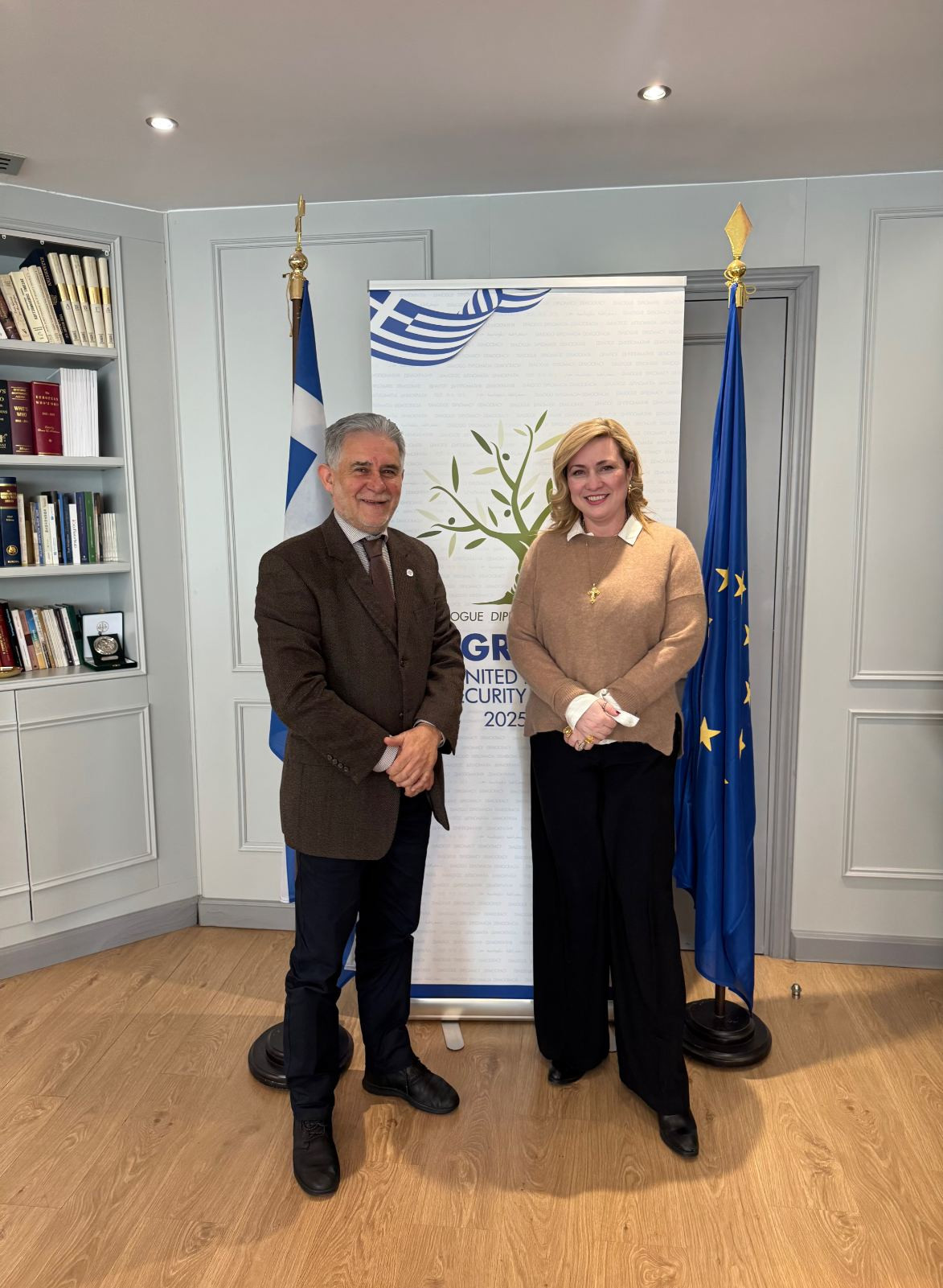 Στα πλαίσια διασύνδεσης της Παναρκαδικής Ομοσπονδίας Ελλάδος με την Ευρωπαϊκή Αρκαδική Ομογένεια, ο Πρόεδρος Π. Μπένος συναντήθηκε με τη Γεν. Γραμματέα Αποδήμου Ελληνισμού και Δημ. Διπλωματίας, Κα Μ. Μυρογιάννη.
