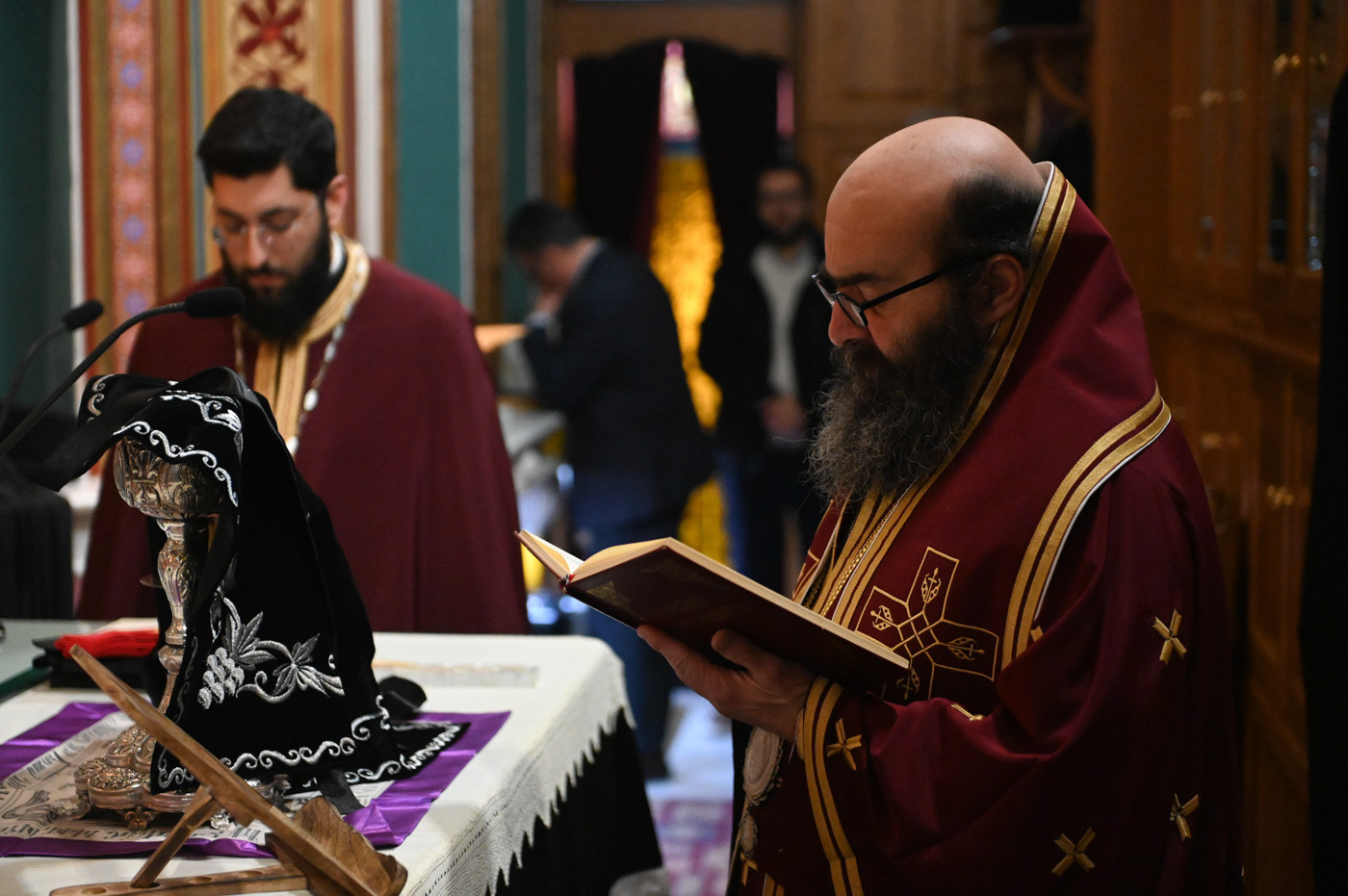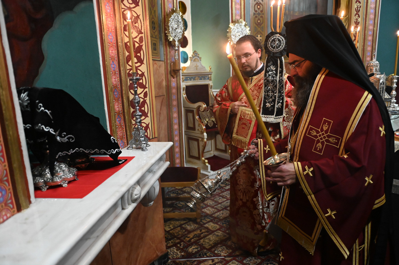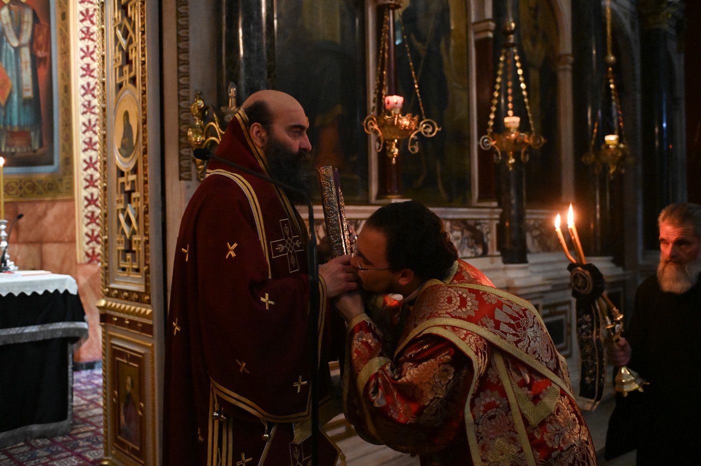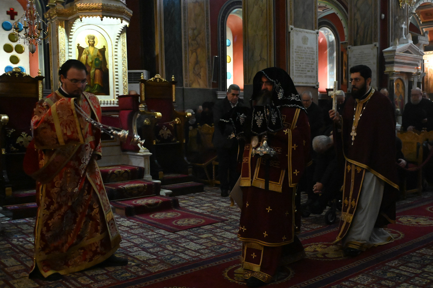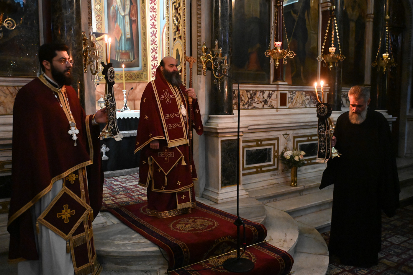 Την Προηγιασμένη Θεία Λειτουργία τέλεσε ο εορτάζων Θεοφιλ. Επίσκοπος Τεγέας κ. Θεόκλητος, συμπαραστατούμενος από τον Πρωτοσύγκελλο της Ιεράς Μητροπόλεως Πανοσιολ. Αρχιμ. Στέφανο Καππέ και τον Διάκονο π. Αλέξιο Ζαρζάνη.