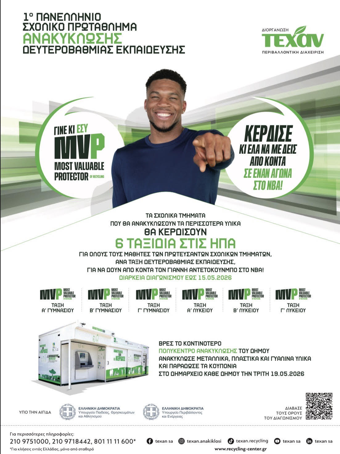 Ο Γιάννης Αντετοκούνμπο παρακινεί κάθε μαθητή «ΓΙΝΕ ΚΙ ΕΣΥ MVP ΤΗΣ ΑΝΑΚΥΚΛΩΣΗΣ» - «ΚΕΡΔΙΣΕ ΚΑΙ ΕΛΑ ΝΑ ΜΕ ΔΕΙΣ ΑΠΟ ΚΟΝΤΑ ΣΕ ΕΝΑΝ ΑΓΩΝΑ ΣΤΟ ΝΒΑ!»