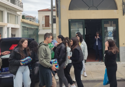 Μαθητές, μαθήτριες και εκπαιδευτικοί του σχολείου Γενικού Λυκείου Τεγέας παρέδωσαν τρόφιμα και είδη πρώτης ανάγκης.