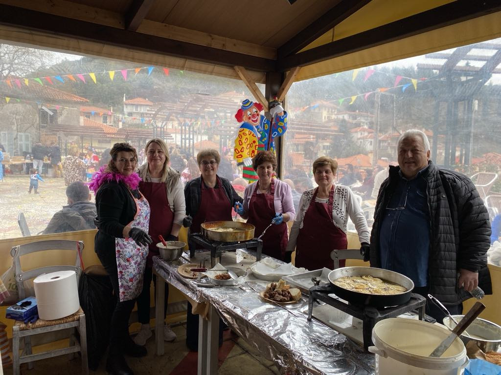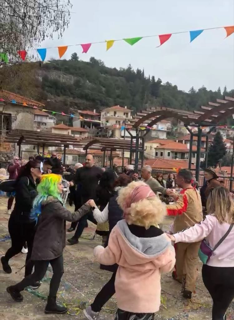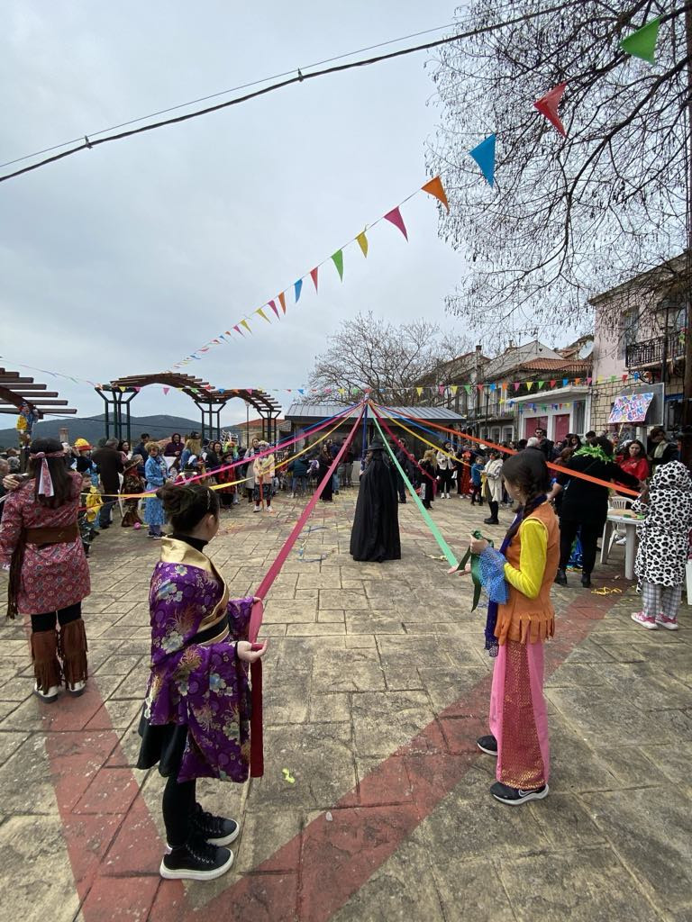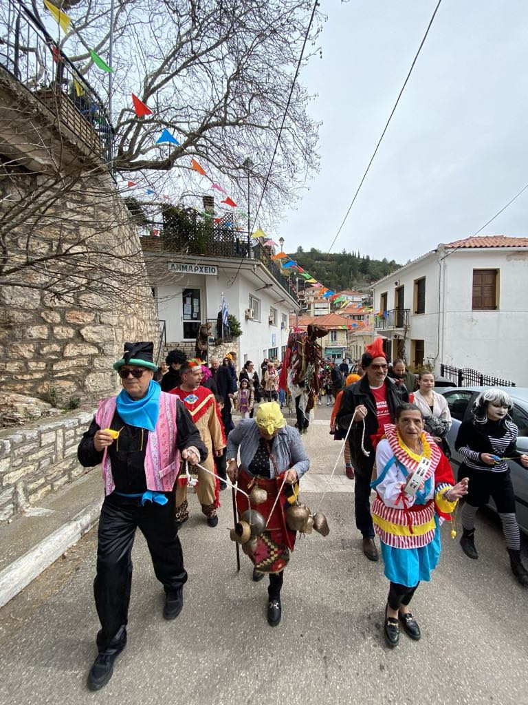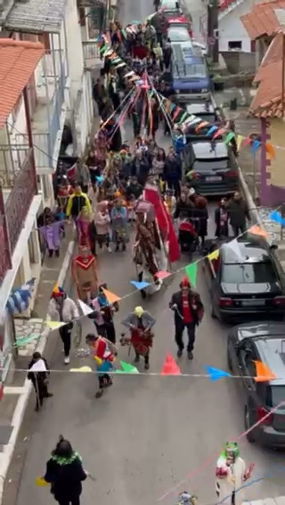 Μικροί και μεγάλοι μασκαράδες με ζεστό χαμόγελο και γιορτινή διάθεση πήραν μέρος στην καρναβαλική παρέλαση με «Γαϊτανάκι» και «Καμήλα», που ξεκίνησε από το Δημοτικό σχολείο, διέσχισε τους δρόμους του χωριού και τερμάτισε στην κεντρική πλατεία, για να σηματοδοτήσει την έναρξη ενός γλεντιού με μουσική, χορό.