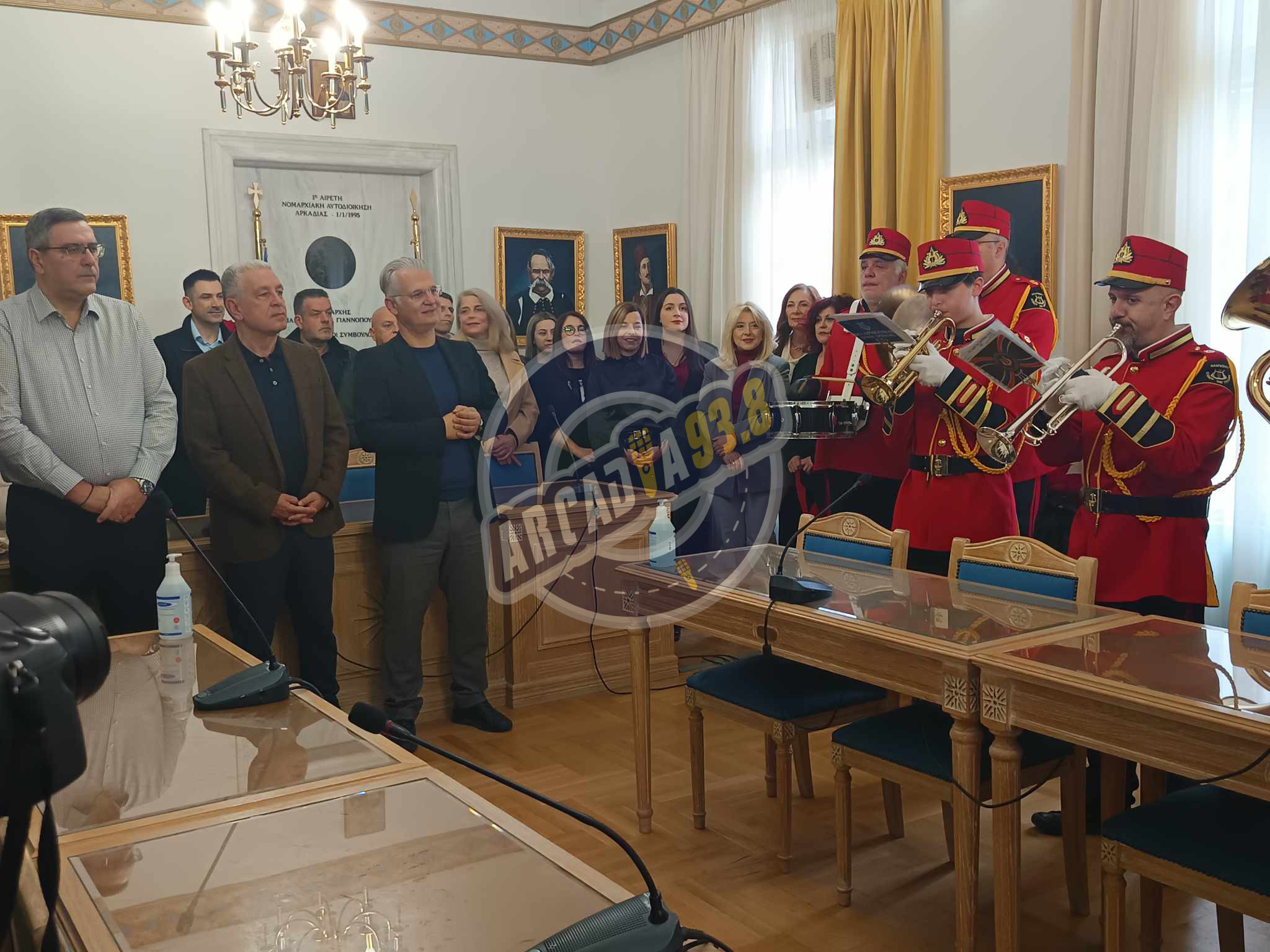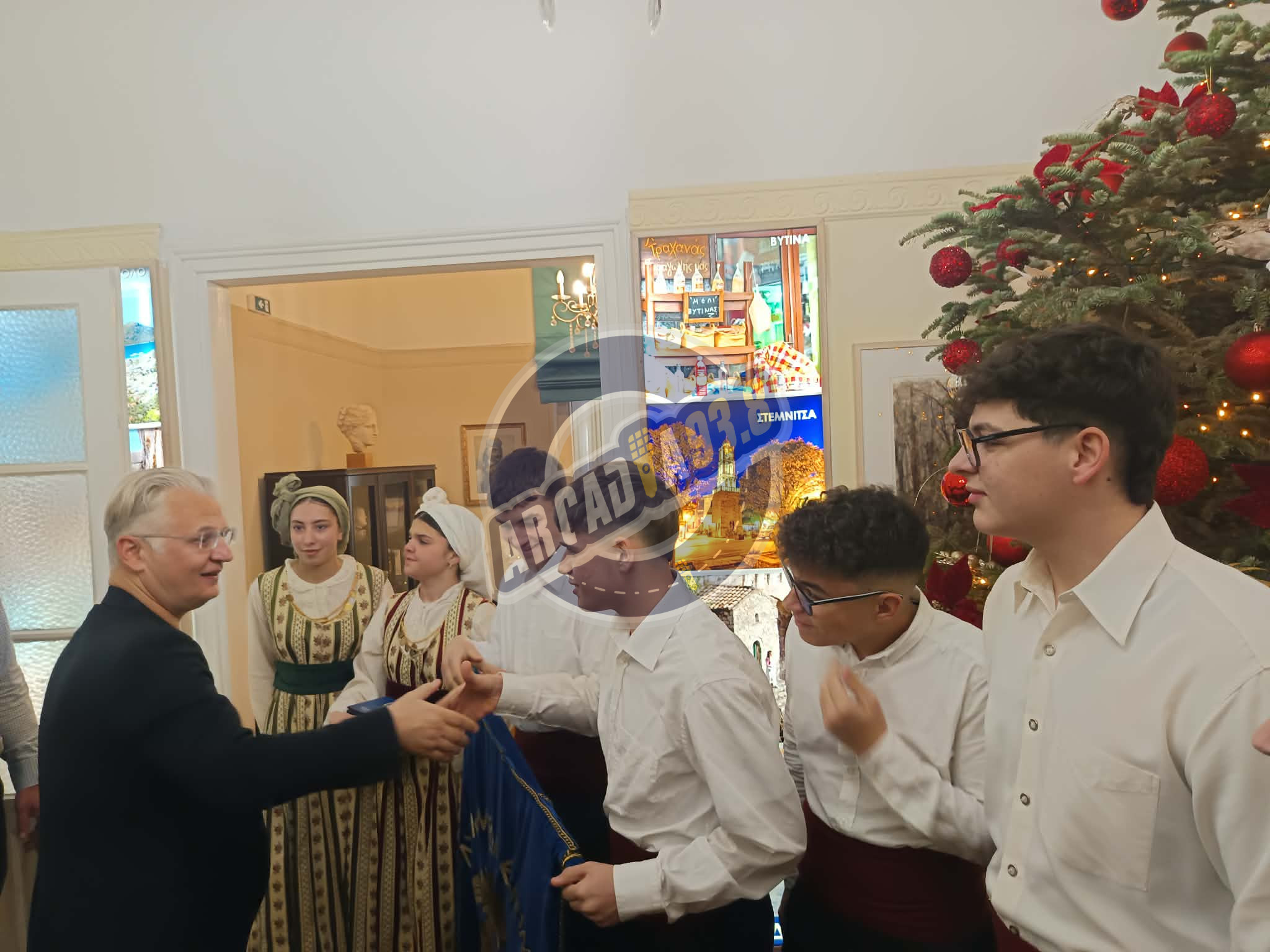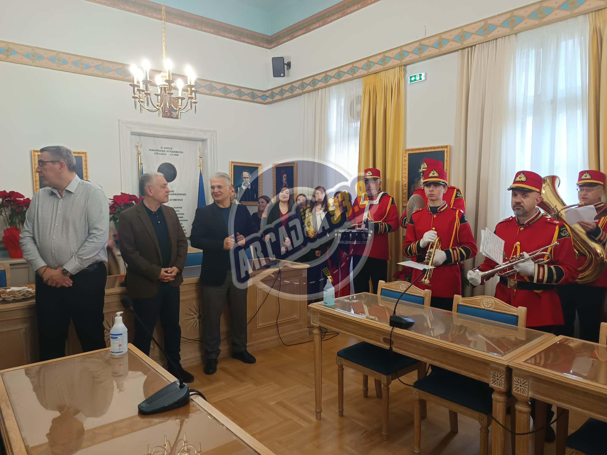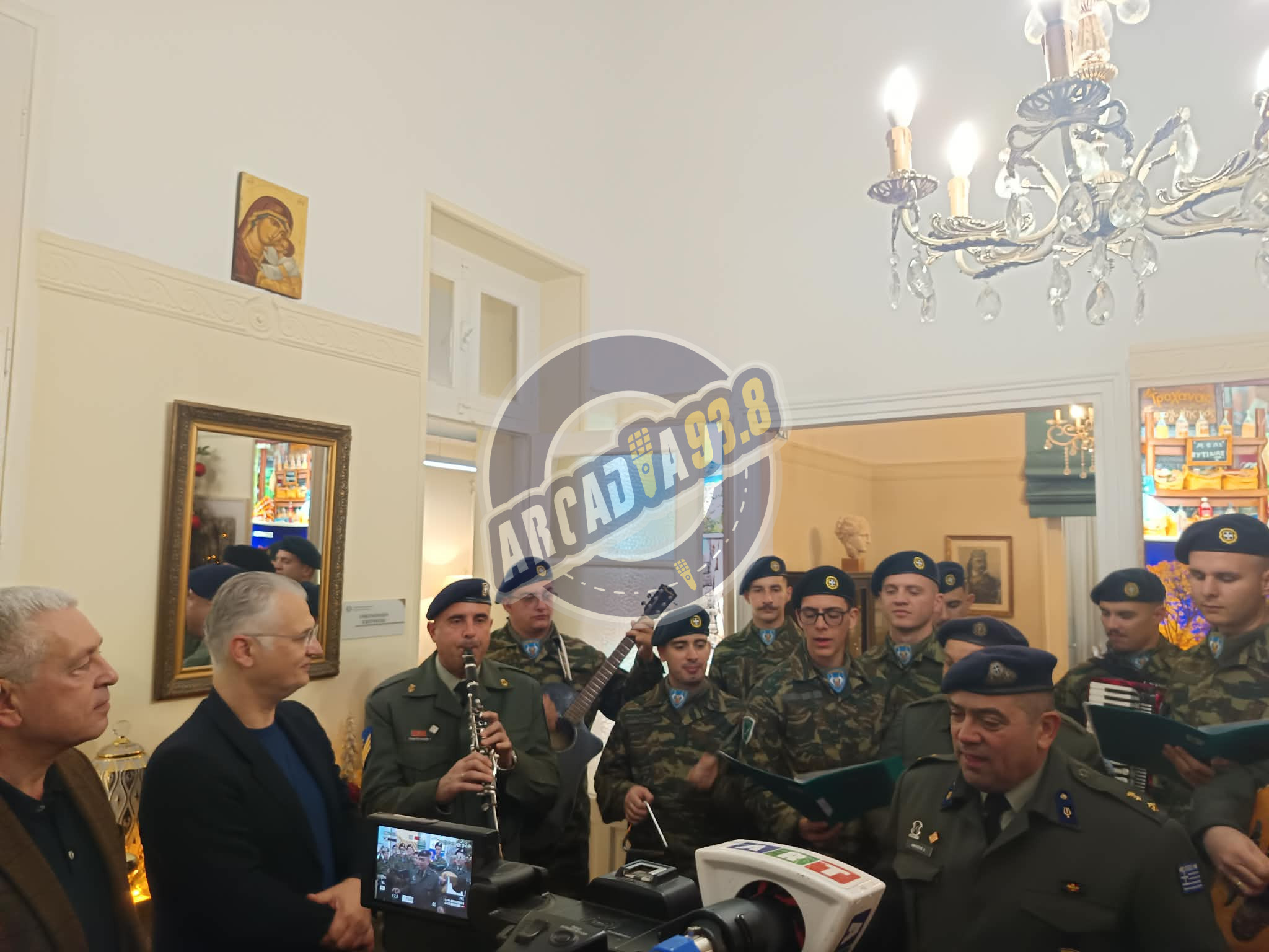 Παρουσία του Περιφερειάρχη Πελοποννήσου Δημήτρη Πτωχού, του Αναπληρωτή Περιφερειάρχη Χρήστου Λαμπρόπουλου, του Αντιπεριφερειάρχη Αρκαδίας Κωνσταντίνου Μανδρώνη και σημαντικού αριθμού συνεργατών έψαλαν τα κάλαντα η Φιλαρμονική του Δήμου Τρίπολης και αμέσως μετά τη Στρατιωτική Μπάντα ντύνοντας με τις συνηθισμένες, αλλά συνάμα τόσο όμορφες μελωδίες τη σημερινή ημέρα.